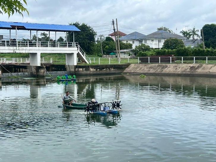 3.) สนับสนุนจัดซื้อเครื่องเติมอากาศแบบโซล่าเซลล์ (Solar Cell) จำนวน 4 เครื่อง ประมาณ 100,000 บาท เพื่อเพิ่มปริมาณออกซิเจนในน้ำ ช่วยเร่งกระบวนการบำบัดทางธรรมชาติ ลดปัญหากลิ่นเหม็น และปรับปรุงคุณภาพน้ำให้ดียิ่งขึ้น