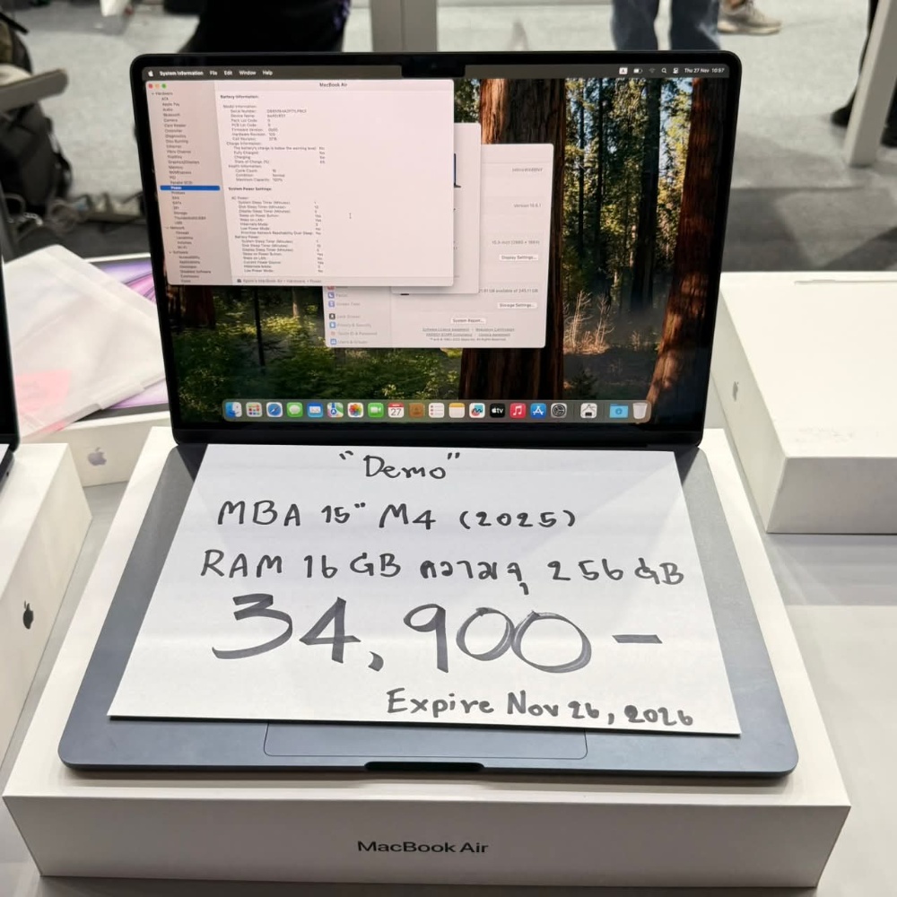 - MacBook Air 15" (ชิป M3): ราคาเริ่มต้น 24,900 บาท