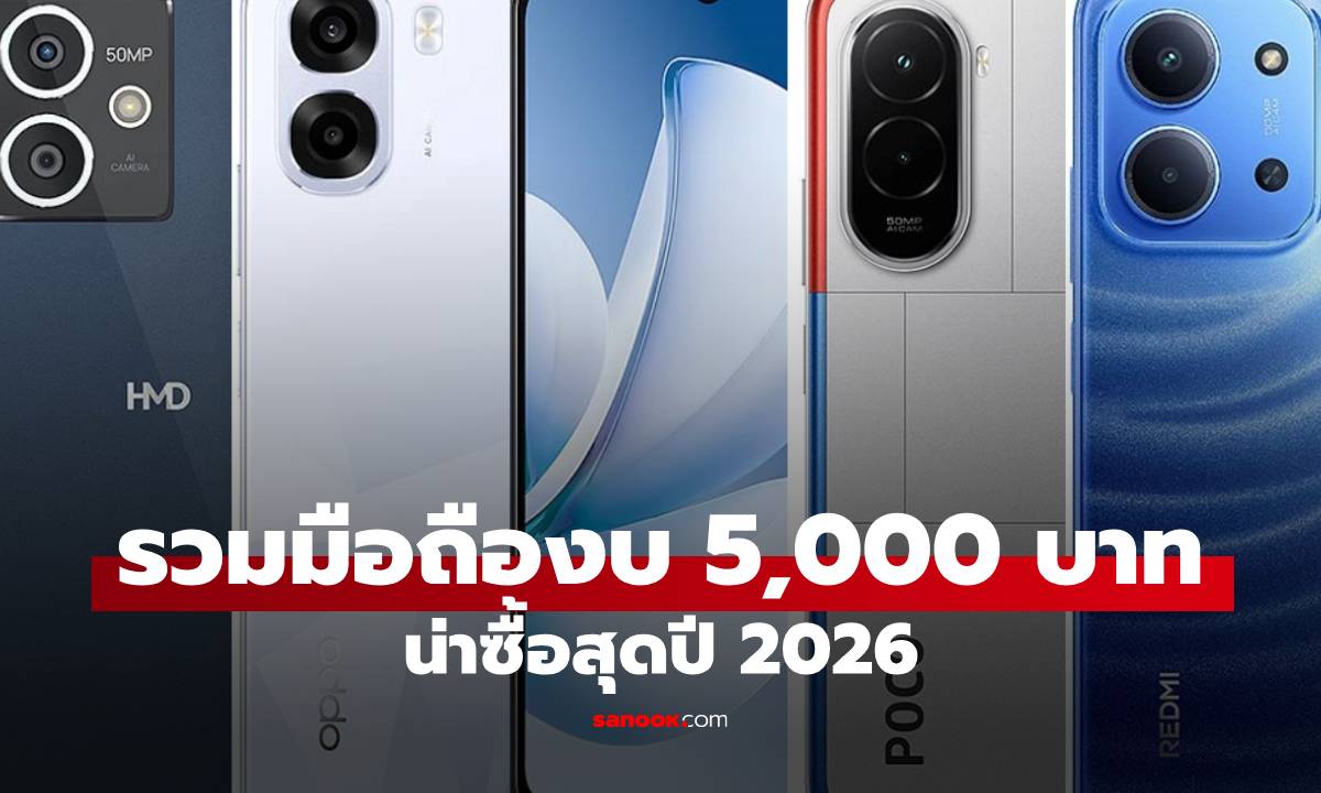 แนะนำ 5 โทรศัพท์ราคาไม่เกิน 5,000 บาท น่าซื้อสุด ประจำปี 2026