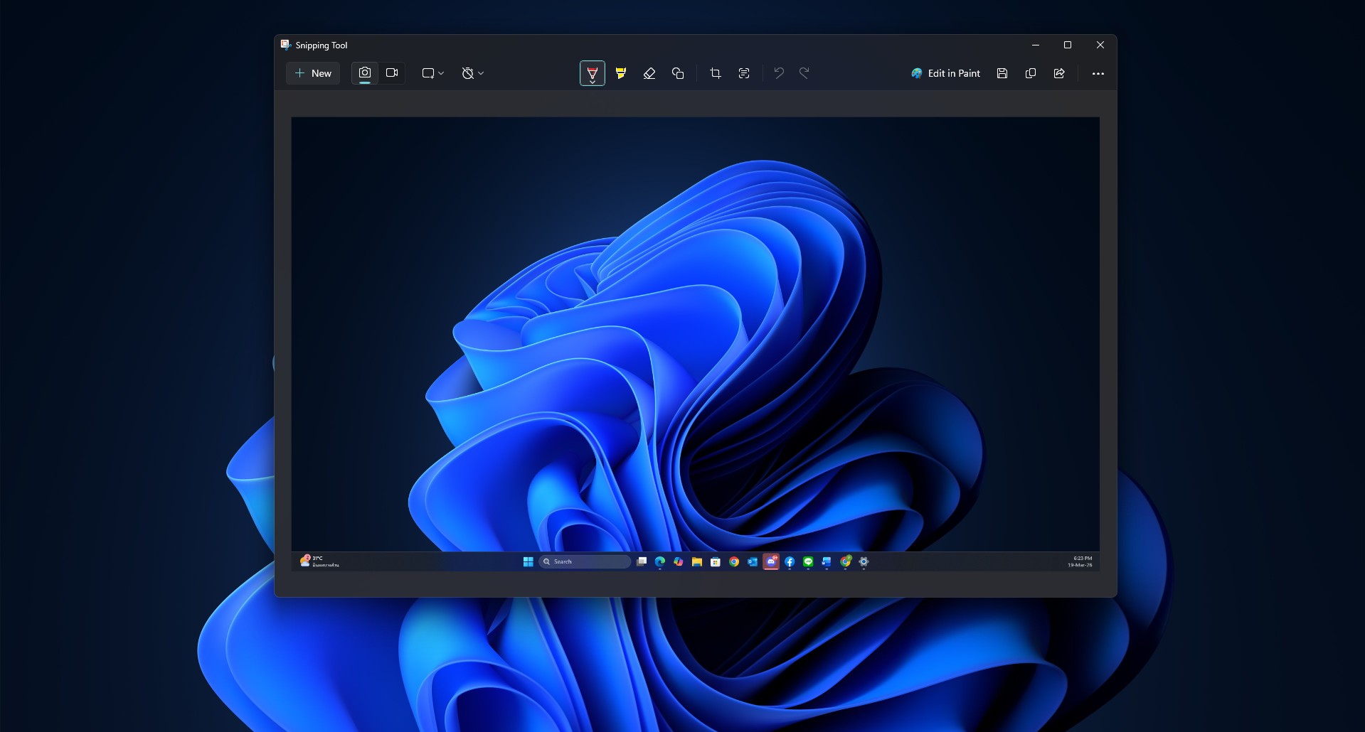จะปรากฏแถบเครื่องมือด้านล่าง ให้เลือกได้ทั้งการแคปหน้าจอเฉพาะหน้าต่าง (Window) หรือแม้แต่การ "อัดวิดีโอหน้าจอ" ก็ทำได้จากจุดนี้