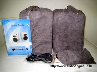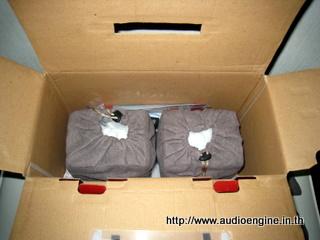 ต้องบอกว่า ใส่ใจตั้งแต่กล่องทีเดียว สลักปิดเปิด แผ่นโฟม แต่ที่เจ๋งสุดๆคือ มีการห่อลำโพงด้วยถุงผ้ากำมะหยี่ คล้ายกับลำโพงแพงๆ หรือสายลำโพงชื่อดังบางยี่ห้อทีเดียว เรียกว่าดูดีมีชาติตระกูลมาก อีกข้อที่น่าชื่มชมคือ เส้นสาย อุปกรณ์ต่อพ่วงให้มาอย่างครบครัน ไม่ต้องวิ่งไปหาอุปกรณ์เพิ่มแต่อย่างใด