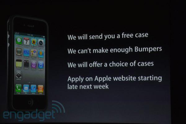 ส่วนเรื่องที่ต้องจับตามากที่สุดในการแถลงข่าวในครั้งนี้ก้คือเรื่องของ ปัญหา การรับสัญญาณที่เป็นปัญหาอยู่ว่า Apple จะทำอย่างไรกับปัญหานี้ ก่อนอื่นๆ Apple ยังคงยืนกรานที่จะไม่ขอโทษในความผิดพลาดครั้งนี้ คือพูดง่ายๆว่ายังไม่ยอมรับว่าปัญหานี้เป็นข้อบกพร่องของตนเองแบบชัดเจน แต่การแก้ปัญหาของ Apple จะแก้โดย มอบ Case ใส่เครื่องให้ฟรีกับผู้ใช้ iPhone 4 ที่ซื้อเครื่องก่อน 30 กันยายนนี้ แต่เนื่องจาก Apple คงไม่สามารถผลิต Bumper Case ส่งมอบให้ทันอย่างแน่นอน จึงมีทางเลือกให้กับผู้ซื้อ สามารถเลือกแบบอื่นได้ แล้วทาง Apple จะจัดส่งให้ถึงบ้านฟรี แต่หากใครซื้อ Bumper case ไปแล้วก็สามารถขอคืนเงินค่าเคสได้ภายใน 30 วัน
