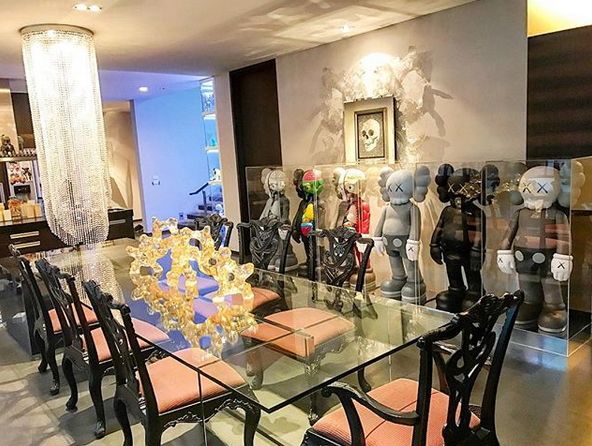 เฟอร์นิเจอร์ที่คุณก้องเลือกนำมาตกแต่งส่วนใหญ่จะเน้นดีไซน์ หรือไม่ก็เลือกของเก่าสไตล์หลุยส์ซึ่งเป็นสไตล์สุดโปรดเข้ามาประดับ จัดวางตามมุมต่างๆ ของห้อง ซึ่งโซนพักอาศัยของคุณก้องแบ่งเป็นห้องนอนเชื่อมต่อกับห้องนั่งเล่นโดยใช้กระจกใสกั้น มีห้องอาบน้ำและห้องแต่งตัวขนาดใหญ่เชื่อมต่อเป็นพื้นที่เดียวกัน ส่วนอีกห้องที่สำคัญบอกเล่าเรื่องราวเกี่ยวกับคุณก้องไม่แพ้เรื่องการแต่งตัวคือห้องสะสมโมเดล ที่เต็มไปด้วยโมเดลนับพันๆ ชิ้น นั่นเป็นเพราะความหลงใหลในความเท่ เสน่ห์ของโมเดลเหล่านี้มาตั้งแต่เด็ก