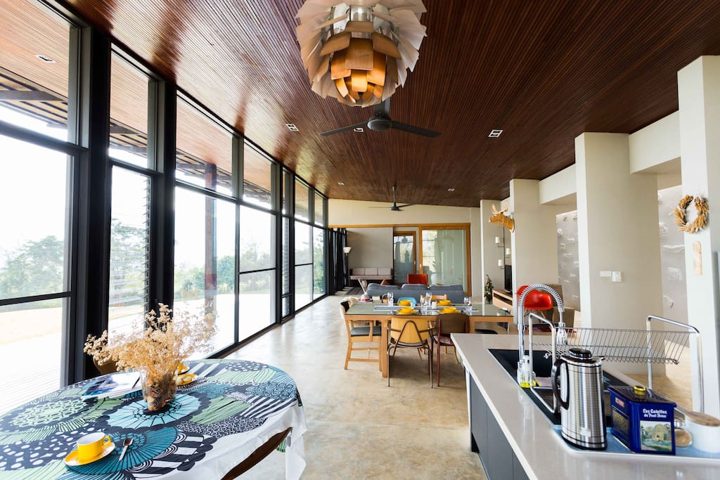 สิ่งที่ทำให้บ้านหลังนี้โดดเด่นมากยิ่งขึ้นคือการกรุกระจกทรงยาวรอบๆ ตัวบ้าน ทำให้ไม่ว่าจะไปนั่ง นอนเล่นอยู่ตรงมุมไหนของบ้านสามารถมองออกไปเห็นธรรมชาติด้านนอก สำหรับบ้านหลังนี้ถ้าครอบครัววงศ์พัวพันธ์เดินทางไปพักผ่อนเมื่อไรก็มักจะไปนอนเล่น ขับรถ ATV ไปรอบๆ บ้านบ้าง ด้วยเหมาะกับการเป็นสถานที่เพื่อการพักผ่อนอย่างแท้จริง ทำให้เจ้าของบ้านอย่างเคนเปิดโอกาสให้คนทั่วไปเข้ามาพักผ่อนที่บ้านของตัวเองผ่านระบบการเช่าพักของ Airbnb ในชื่อ Panoramic Mountain View Residence ด้วย ซึ่งจากคอมเมนท์ของผู้ที่เคยเข้าพัก ส่วนใหญ่ชื่นชอบในความสวยงามของสถานที่ การตกแต่งที่เรียบง่าย และเป็นสถานที่ที่เหมาะกับการเดินทางไปพักผ่อนแบบครอบครัว