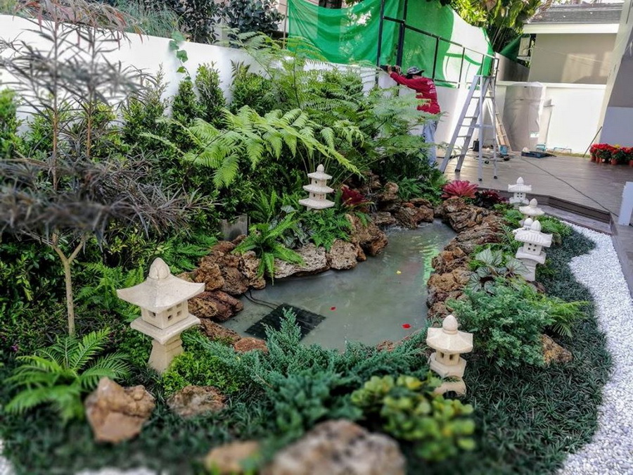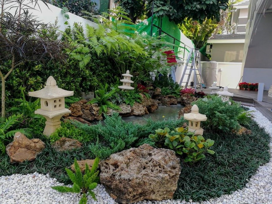 การตกแต่งด้วยหินกรวด และของประดับที่สะท้อนกลิ่นอายแบบสวนญี่ปุ่นสุดๆ
