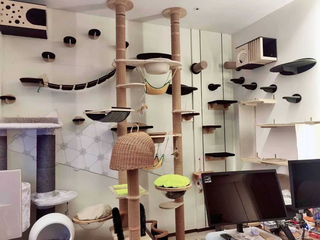 ดีกรีความโปรดปรานแมวของเขาย่อมไม่ธรรมดา เมื่อได้เห็นคอนโดแมวขนาดใหญ่ซึ่งเป็นคอนโดแมวแบบผนัง แบบนี้ถือเป็นสวรรค์ของบรรดาเหมียวที่แท้ทรู จะได้วิ่งเล่น กระโดด ซ่อนตัวได้อย่างเต็มที่