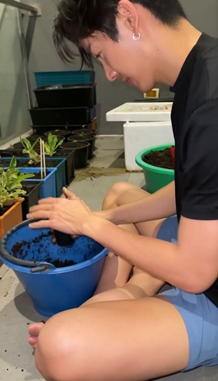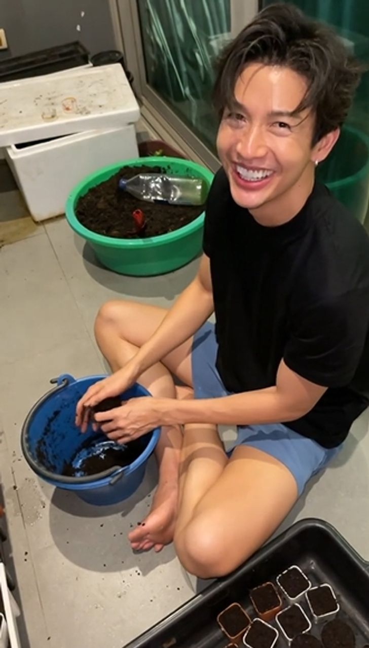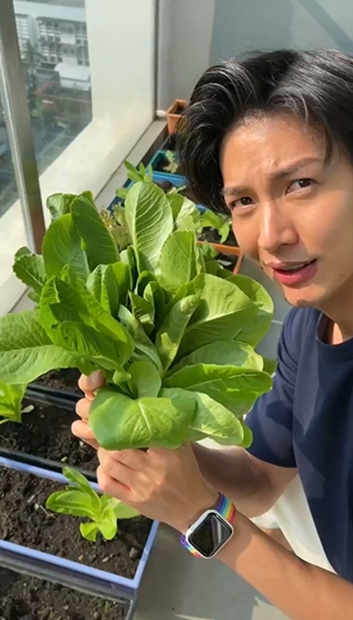 ระเบียงคอนโดมิเนียมที่แม้จะมีพื้นที่จำกัด แต่ก็เต็มไปด้วยกระบะผักสวนครัวที่พุฒซื้อเมล็ดผักต่างๆ ทั้งคะน้า กะหล่ำปลี บัตเตอร์เฮด คอสเขียว คอสแดง นอกจากนั้นยังมีดอกดาวเรืองที่ปลูกไว้ให้จุ๋ย (เนื่องจากได้เมล็ดแถมมา) ฝ่ายจุ๋ยที่เป็นผู้ถ่ายคลิปก็ให้กำลังใจพร้อมบอกว่าถ้าบ้านเสร็จรับรองพุฒได้ปลูกผักสมใจอย่างแน่นอน