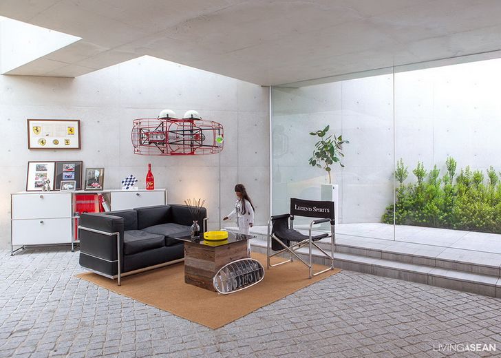 ในขณะที่บริเวณโถงกว้างแห่งนี้ถูกออกแบบและตกแต่งให้เป็นห้องนั่งเล่นในโทนสว่าง พร้อมกับมีสวนหย่อมที่กั้นด้วยกระจกใสเอาไว้นั่งชมความสดชื่นอีกด้วย