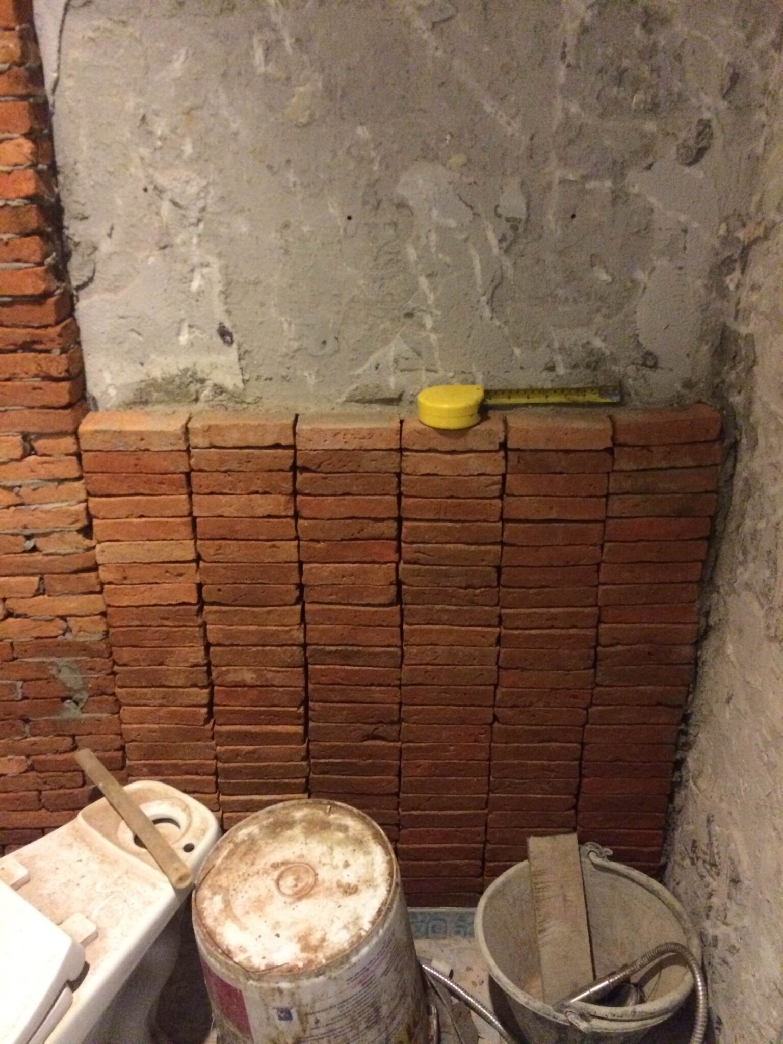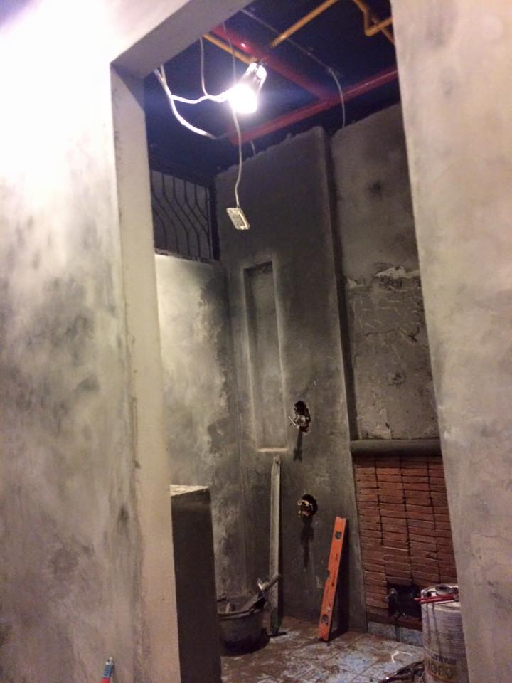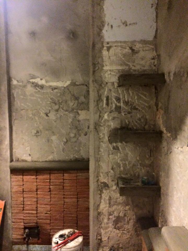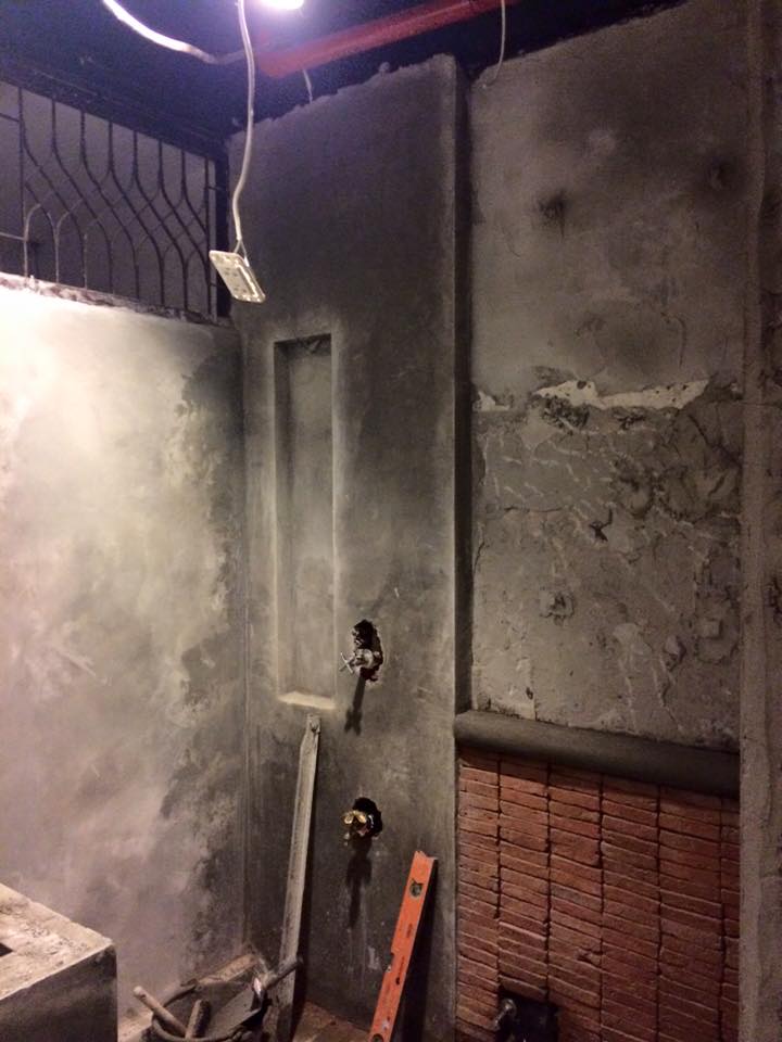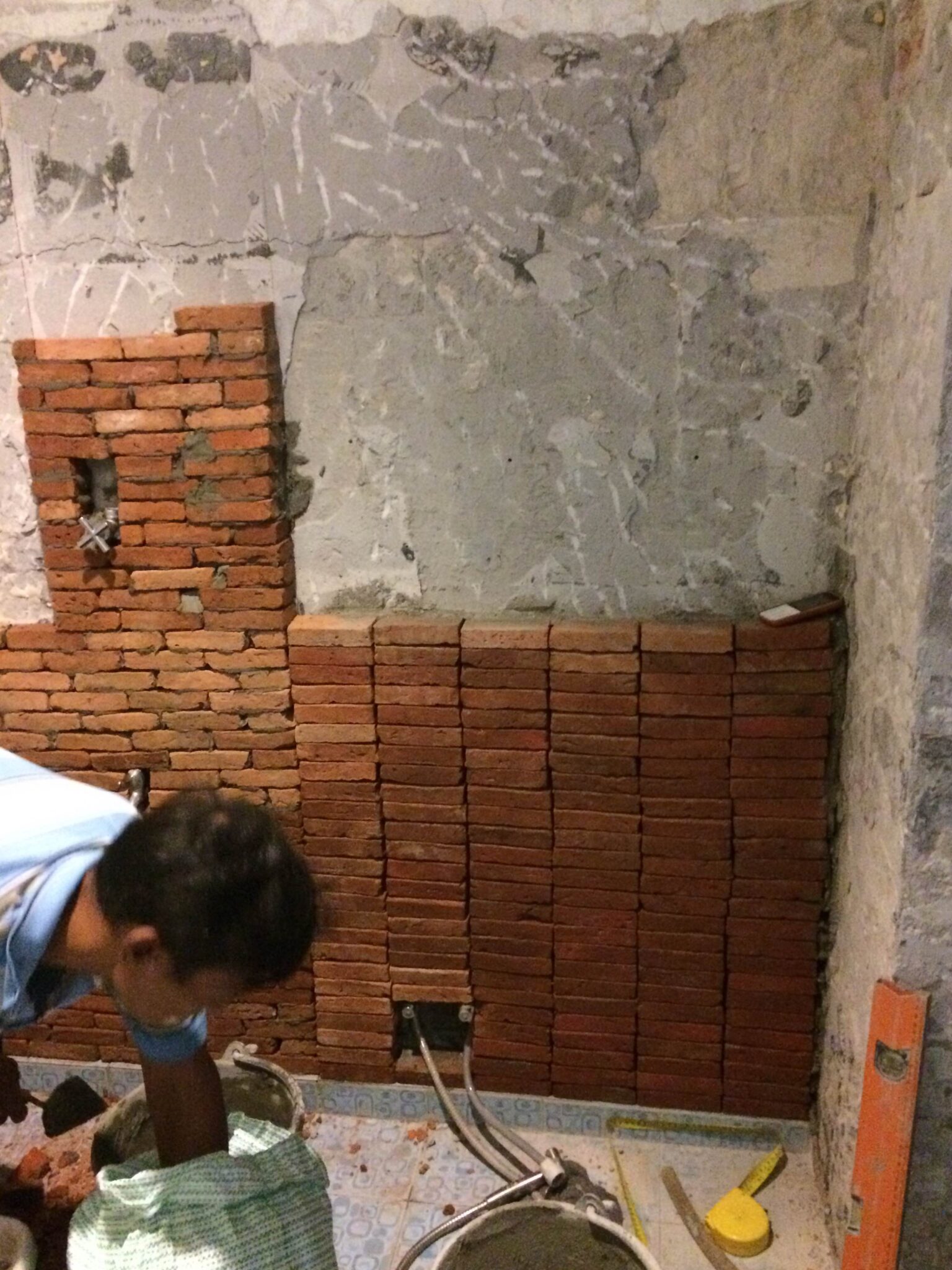 นี่คือตำแหน่งอ่างล้างหน้าเดิมครับ ผมก่ออิฐใหม่ ทำผิวขัดมันแต่มีลูกเล่นเพิ่มนะ คอยดูต่อครับ