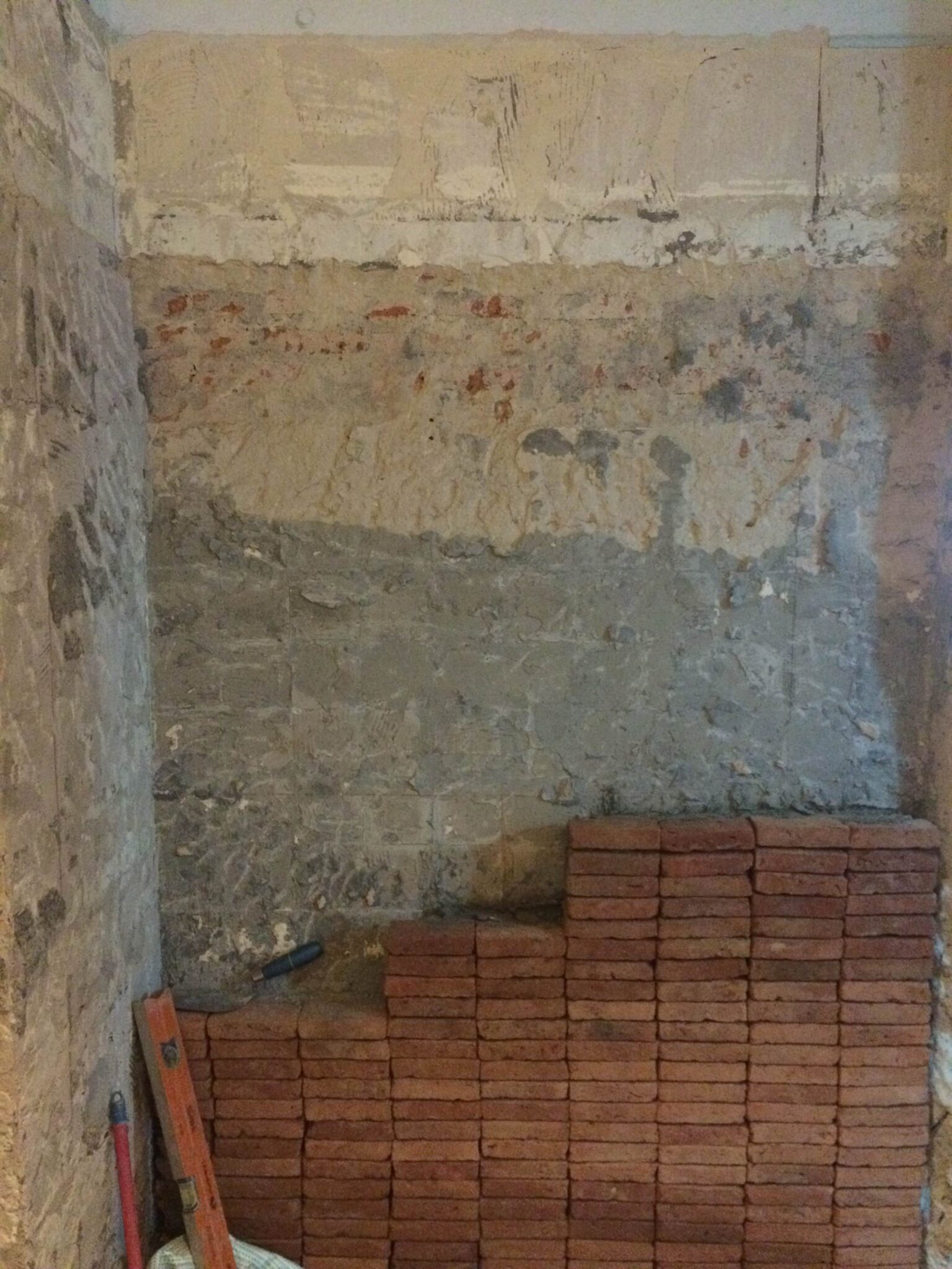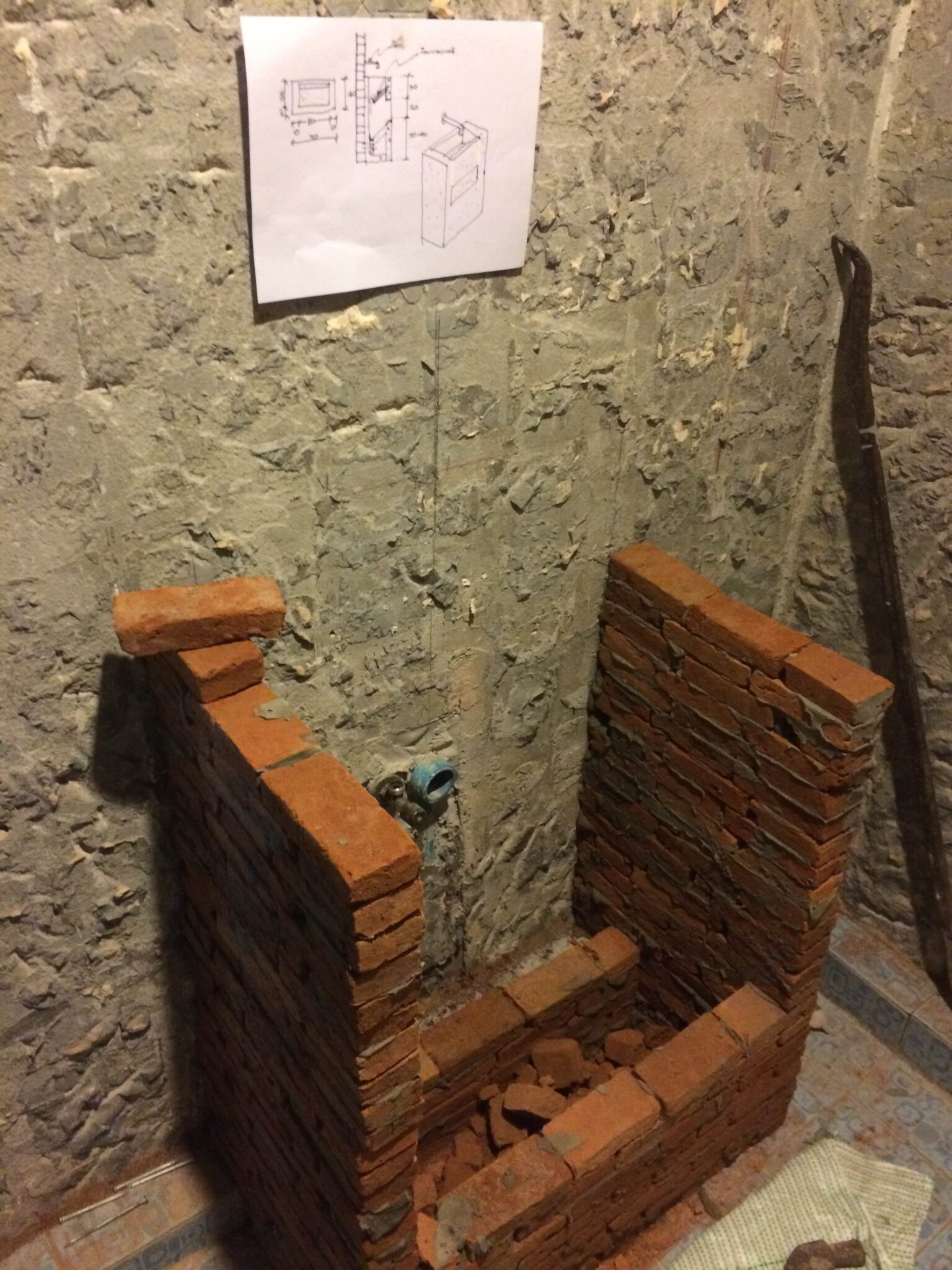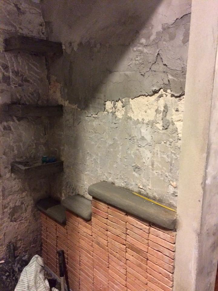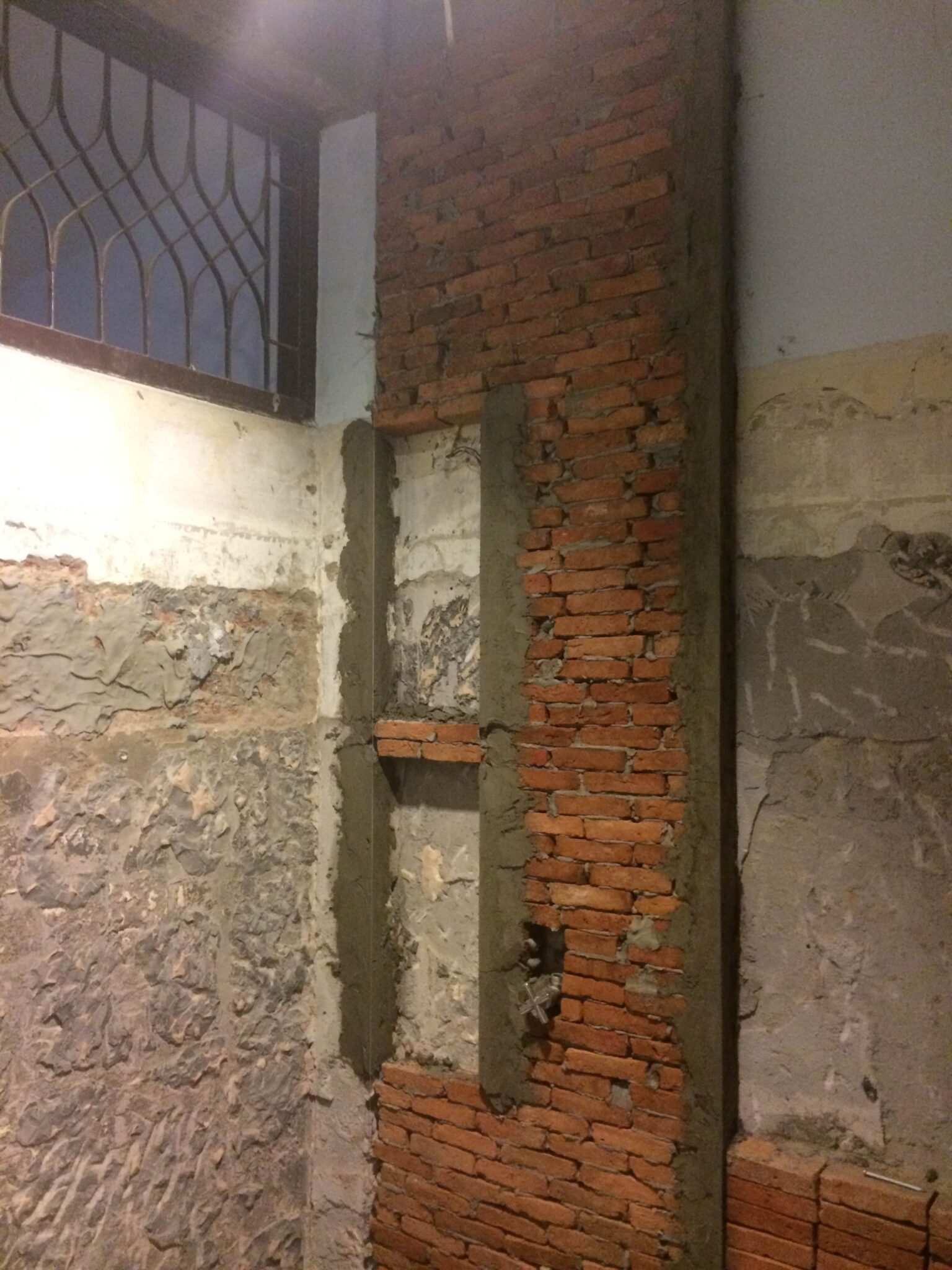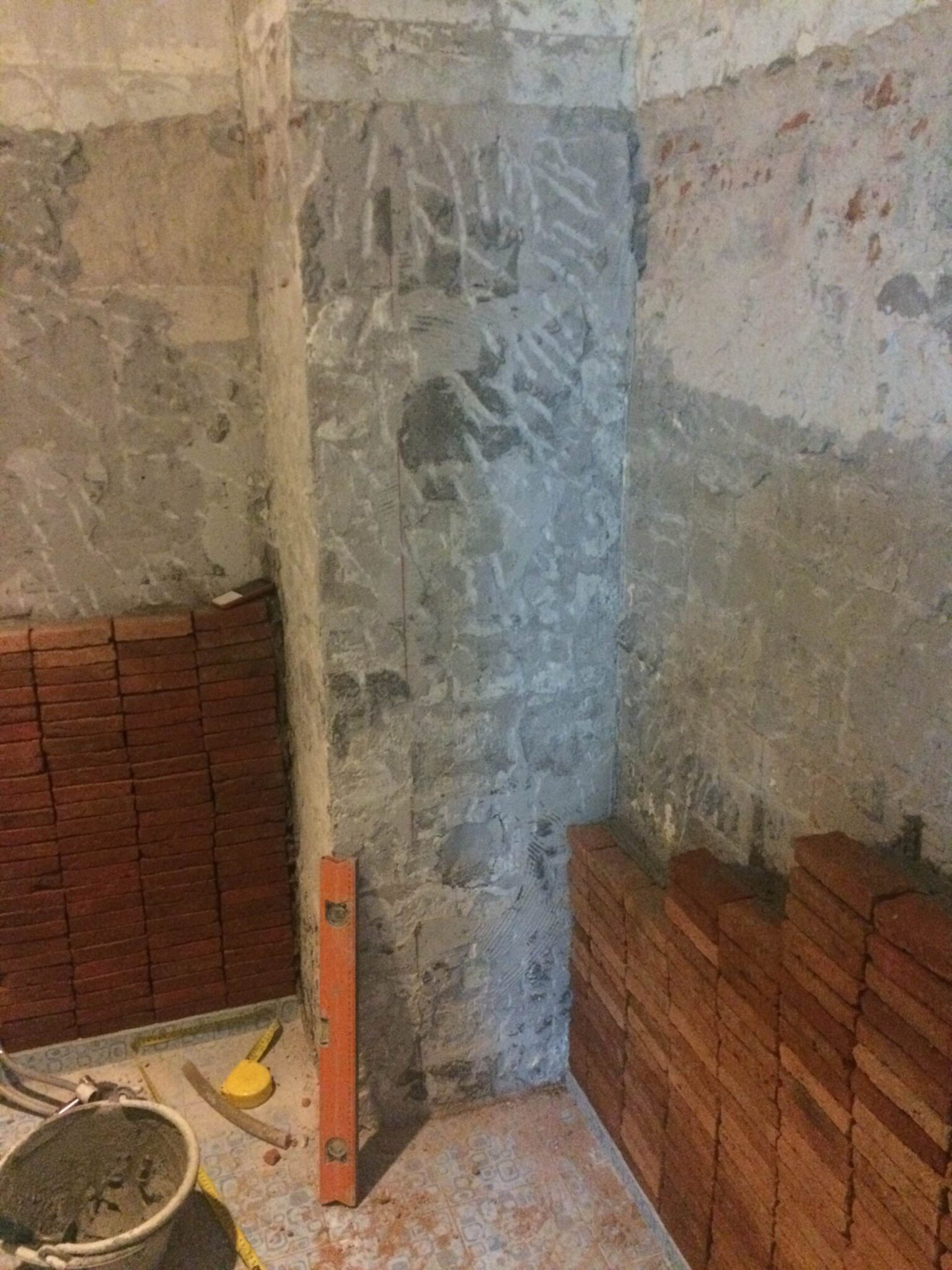 นี่คือตำแหน่งอ่างล้างหน้าเดิมครับ ผมก่ออิฐใหม่ ทำผิวขัดมันแต่มีลูกเล่นเพิ่มนะ คอยดูต่อครับ