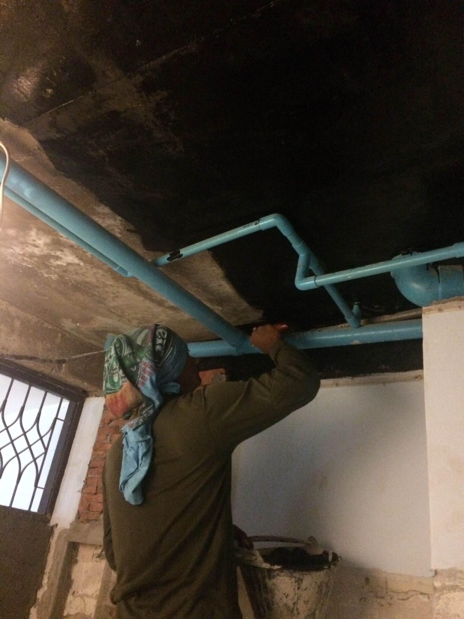 ขัดมันแฝงผนังอาบน้ำครับ ทาสีท้องพื้นแล้ว