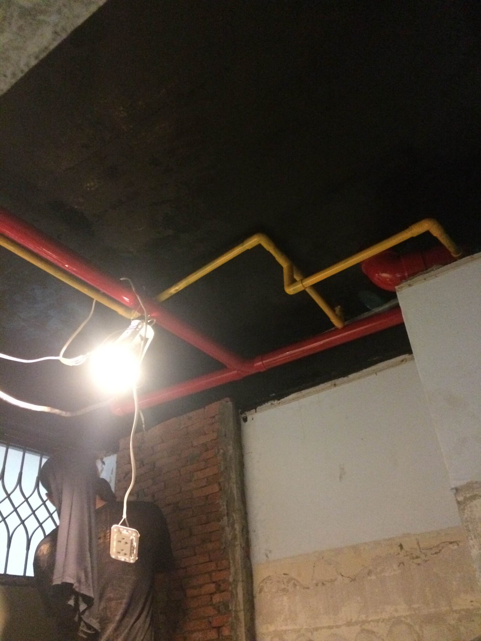 สลับกลับมา ท้องพื้นห้องน้ำครับ ผมรื้อฝ้าทิ้งทั้งหมด โชว์ท้องพื้นเลย ทาสีดำ ส่วนท่อน้ำทาสีตัดเล่น สวยงามดี