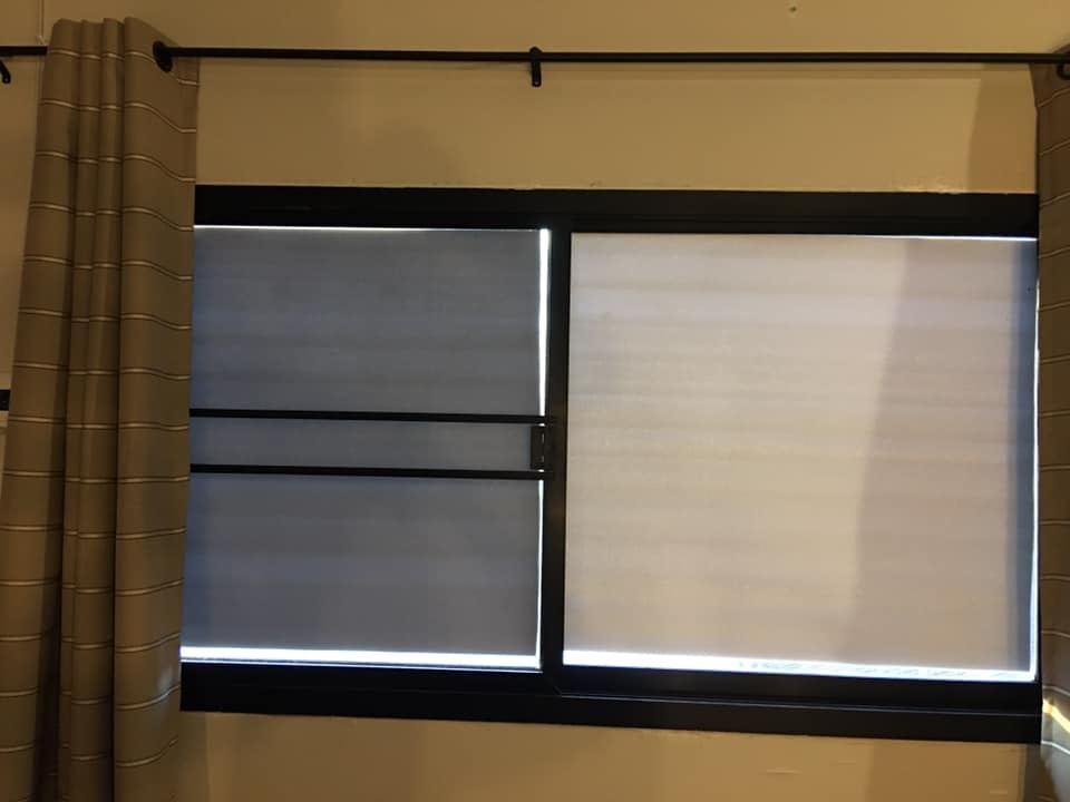 "การเอาตัวรอดจากความสุกหน้าร้อน ห้องเราโดนแดดบ่ายเต็มๆ กลางวันร้อนมากยิ่งเดือนเมษานี่ ขนาดเปิดแอร์ยังไม่ค่อยเย็น ฟิล์มกันแดด 80% ยังเอาไม่อยู่ ร้อนแบบเอามือแตะกระจกแล้วสะดุ้ง จู่ๆ เห็นคนเอาฉนวนกันความร้อนไปติดซันรูฟเลยสั่งมาแปะกระจกที่ห้องบ้าง เห๊ยย ได้ผลแฮะ ฉนวนอันนี้ที่เค้าเอามากันความร้อนใต้ฝ้าเพดาน มีหน้าที่สะท้อนความร้อน เราซื้อแบบเป็นเมตรมาตัดเองเลยมีช่องว่างเล็กน้อย ๆ ผลลัพธ์ที่ได้คือกันไอร้อนเข้ามาได้ดีมาก (ตามความรู้สึกเรา) เทียบจากตอนเอามือแตะที่ฉนวนกับช่องว่างเล็กๆ ที่เป็นกระจกมีฟิล์มกรองแสง 80%
