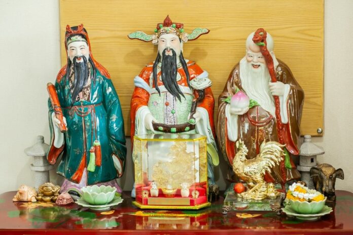 ของมงคลตามความเชื่อของชาวจีน หากบ้านไหนบูชาเทพ ฮก ลก ซิ่ว เชื่อว่าจะทำให้ร่ำรวย มีเงินมีทองใช้อย่างไม่ขาดสาย โดย “ฮก” คือเทพดวงดาวเเห่งความสุขเเละความโชคดี “ลก” คือเทพดวงดาวเเห่งความมั่นคงเเละชื่อเสียงลาภยศ และ “ซิ่ว” คือเทพดวงดาวเเห่งเรื่องอายุยืนยาว