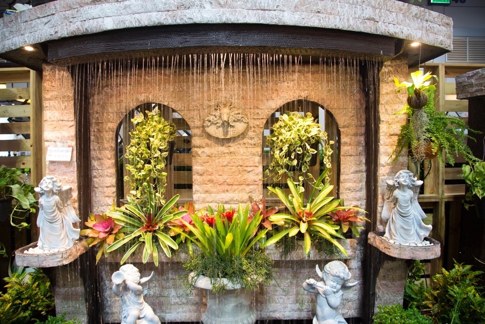 จัดสวนน้ำตก กับประติมากรรมปูนปั้น