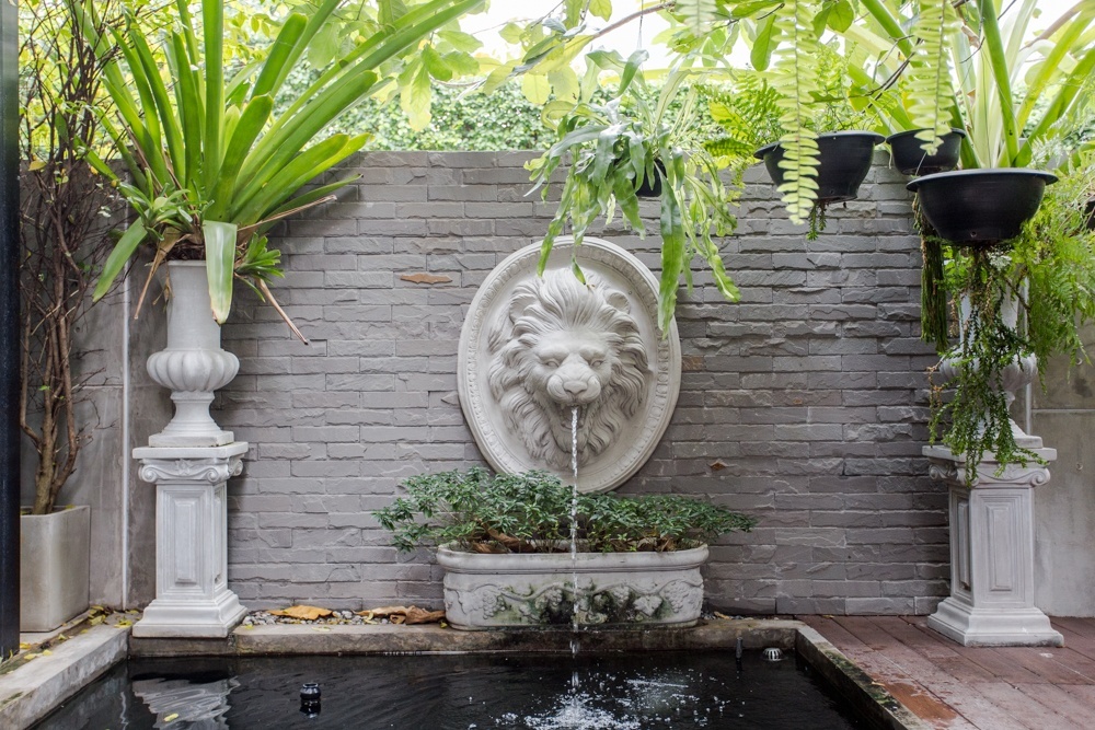 แม้จะไม่มีพื้นที่กว้างขวาง ก็สามารถจัดสวนน้ำตกเพื่อเพิ่มความร่มรื่นให้มุมบ้านได้ไม่ยาก โดยการติดตั้งฉากปูนปั้นบริเวณแนวกำแพงของบ้าน ซึ่งมาพร้อมม่านน้ำตกและช่องว่างสำหรับจัดสวนปลูกต้นไม้ในบริเวณเดียวกัน ช่วยให้คุณสามารถประหยัดพื้นที่ใช้งานในการจัดสวนและสร้างบรรยากาศแห่งการพักผ่อนที่แตกต่างไปพร้อมกัน