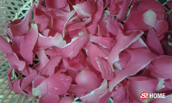 2.เด็ดกลีบกุหลาบออก แล้วฉีกกลีบดอกเป็นเส้นตามแนวยาว นำไปล้างน้ำทำความสะอาด