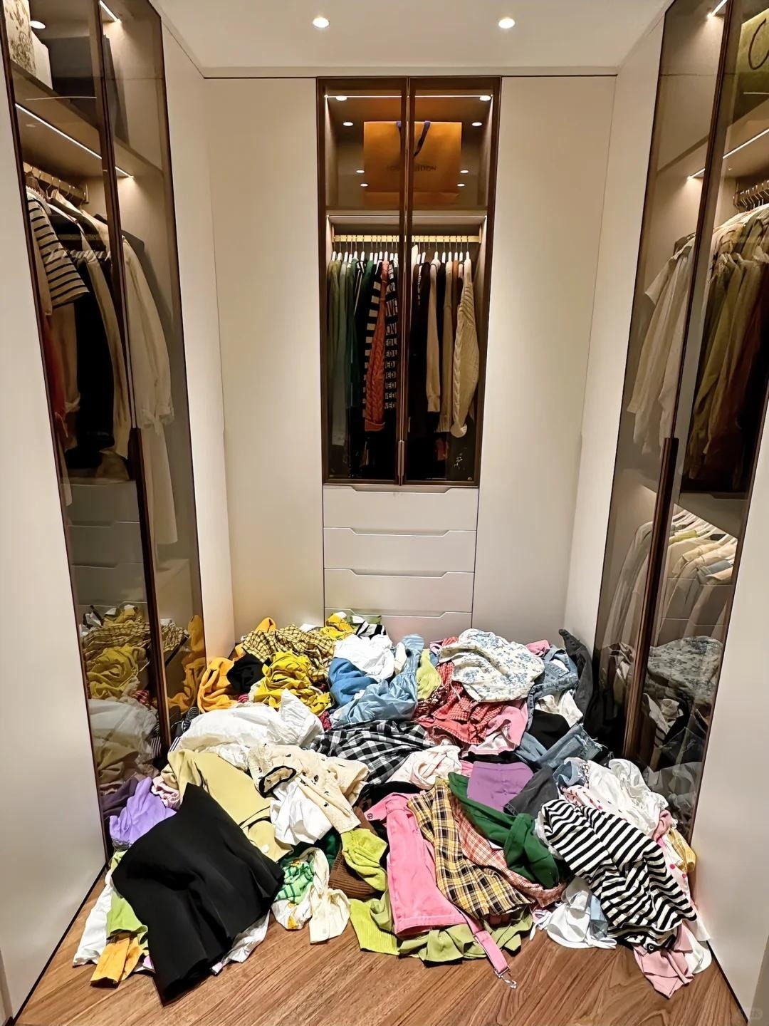 ตู้เสื้อผ้าที่อัดแน่นไปด้วยเสื้อผ้าที่ไม่เคยถูกแตะต้องมานาน 2-3 ปี ไม่เพียงแต่กินพื้นที่ แต่ยังทำให้ห้องดูรกและขัดขวางการไหลเวียนของอากาศ