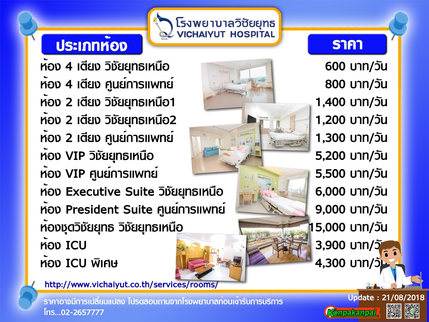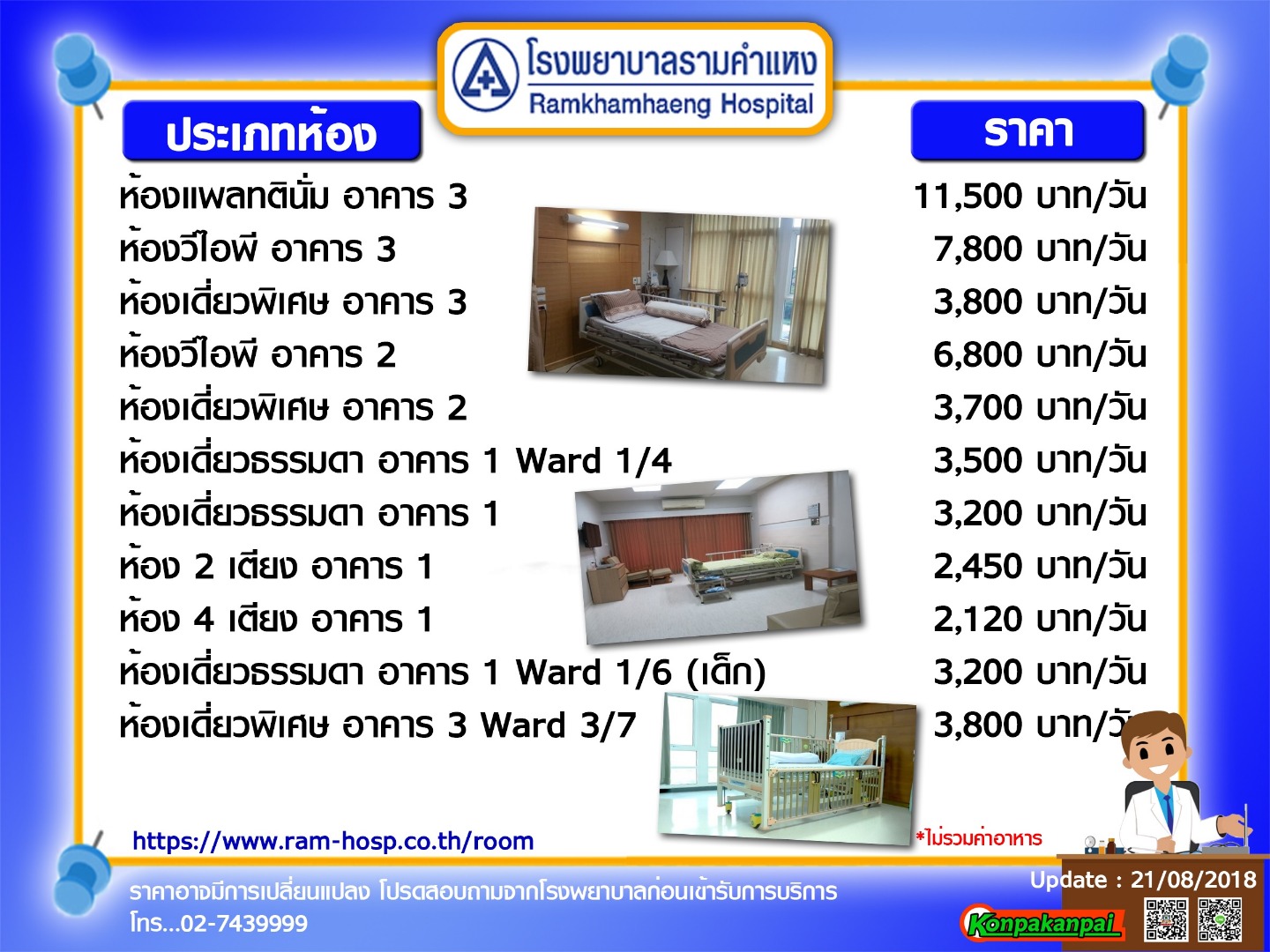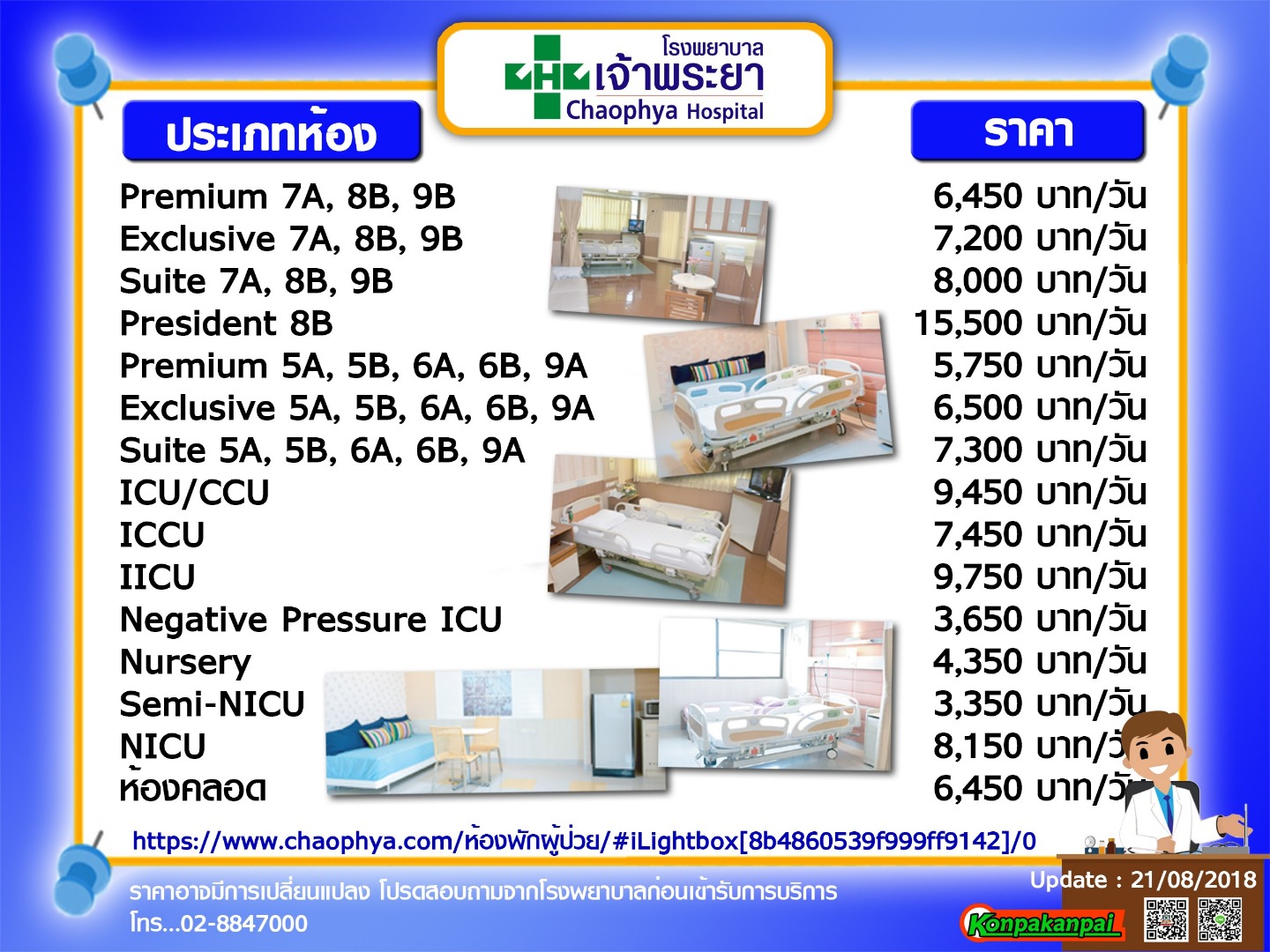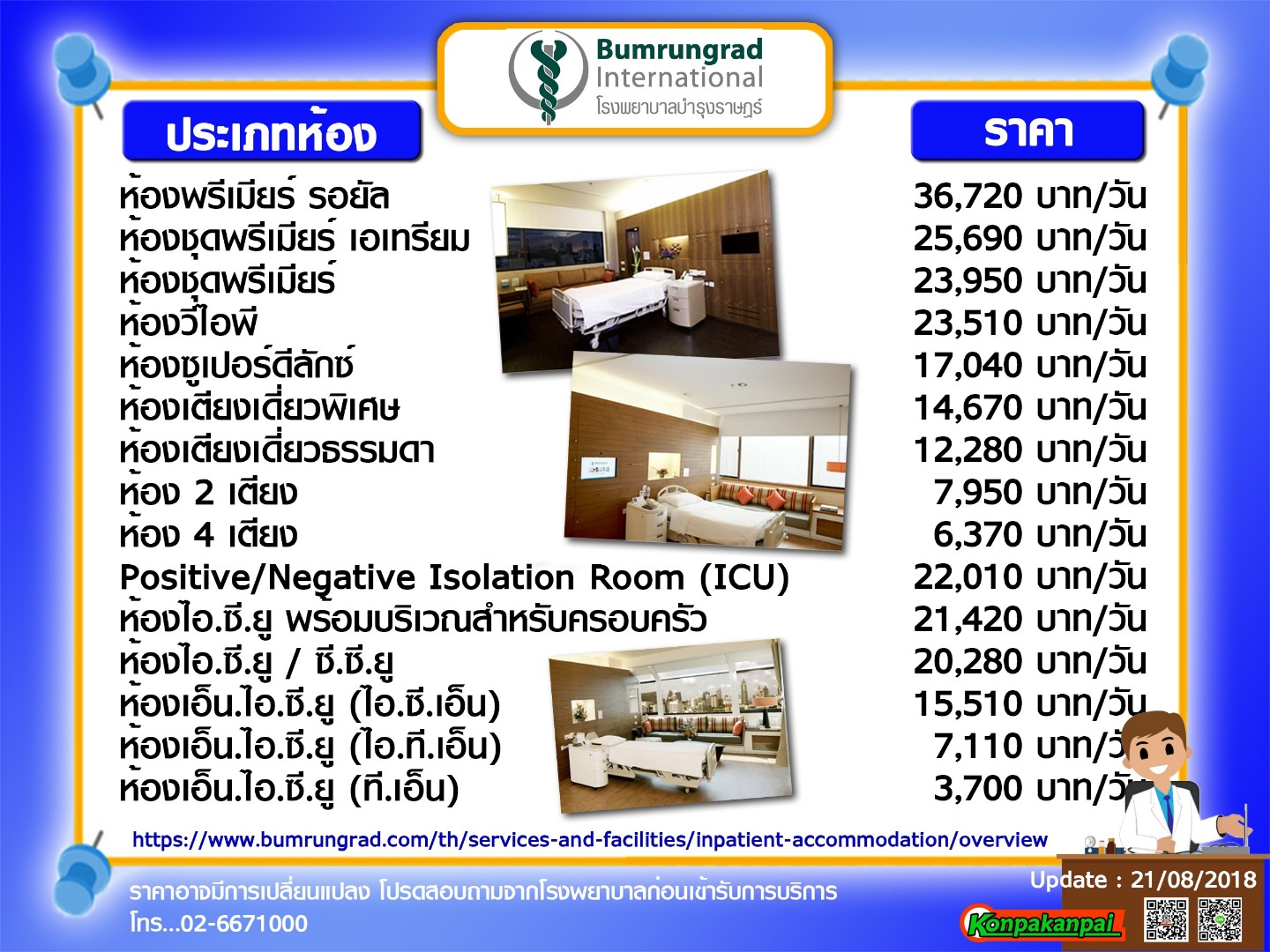 รวม "ค่าห้องผู้ป่วย" ของ "โรงพยาบาล" ทั่วกรุงเทพและปริมณฑล