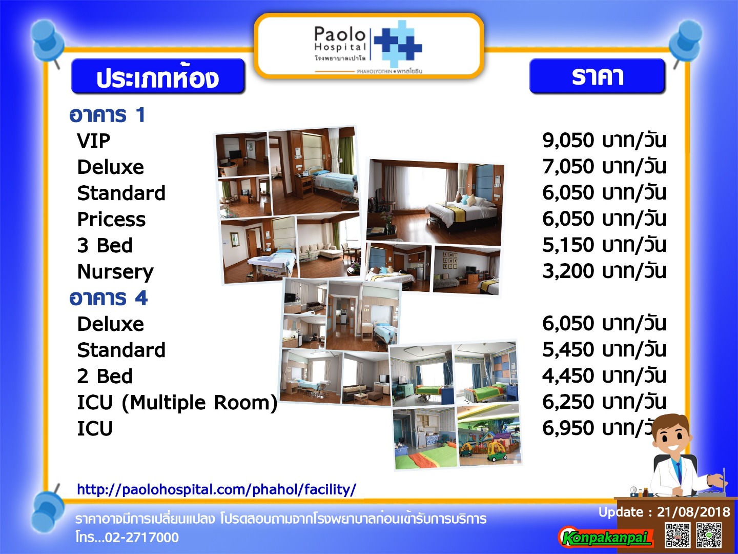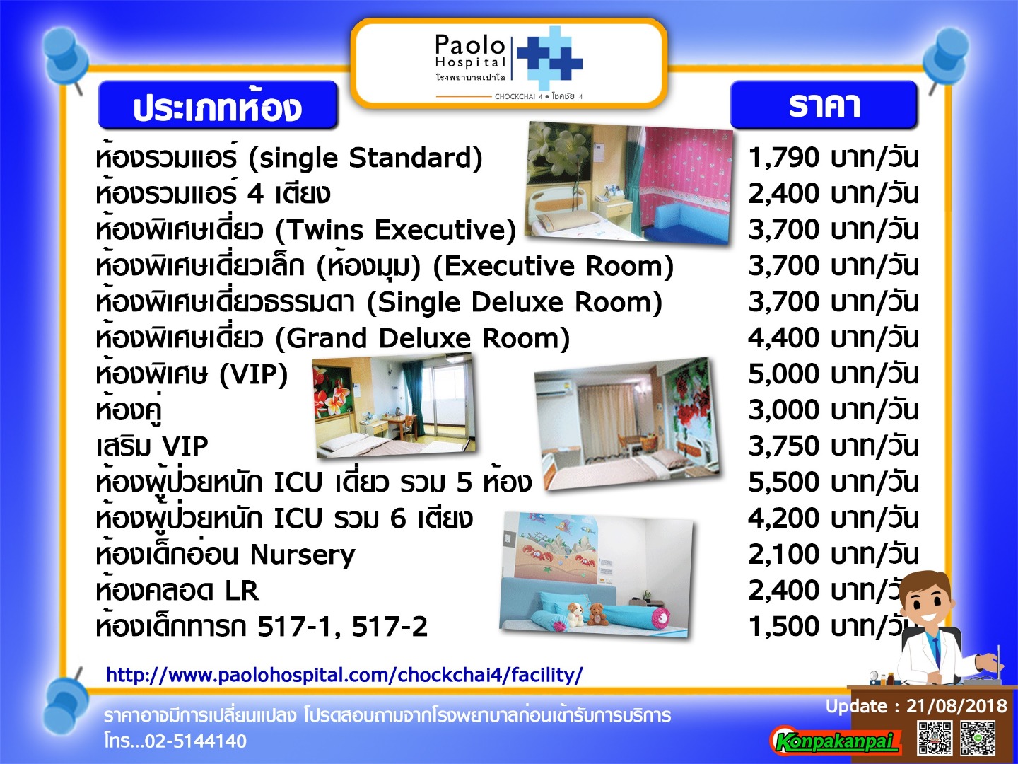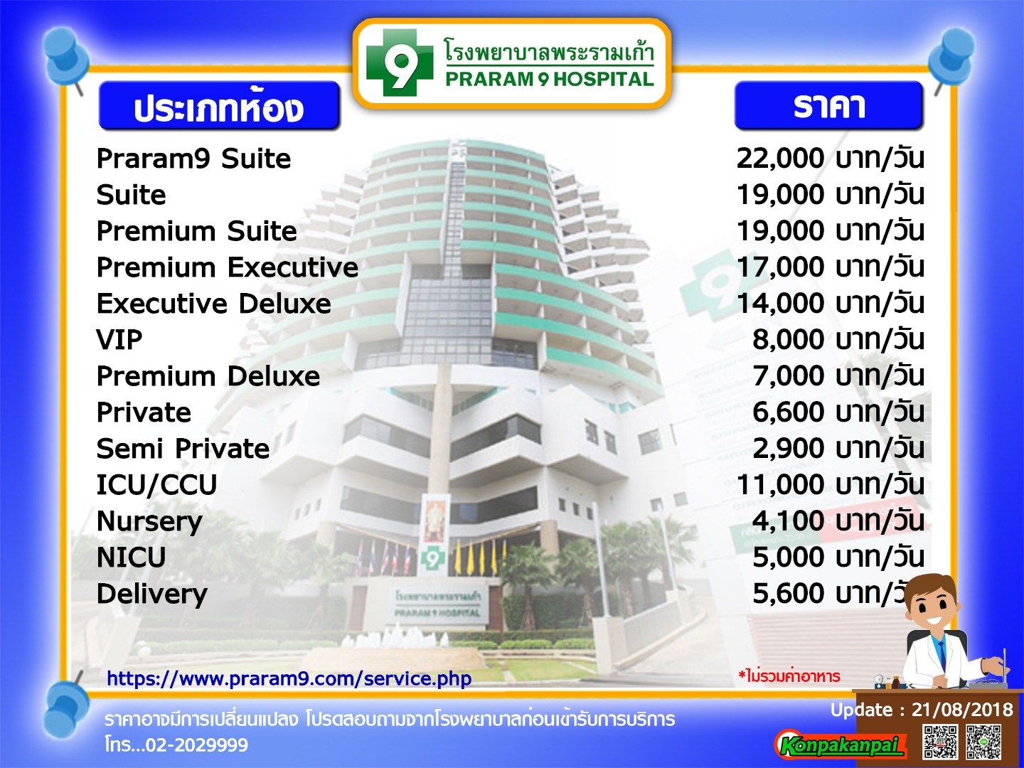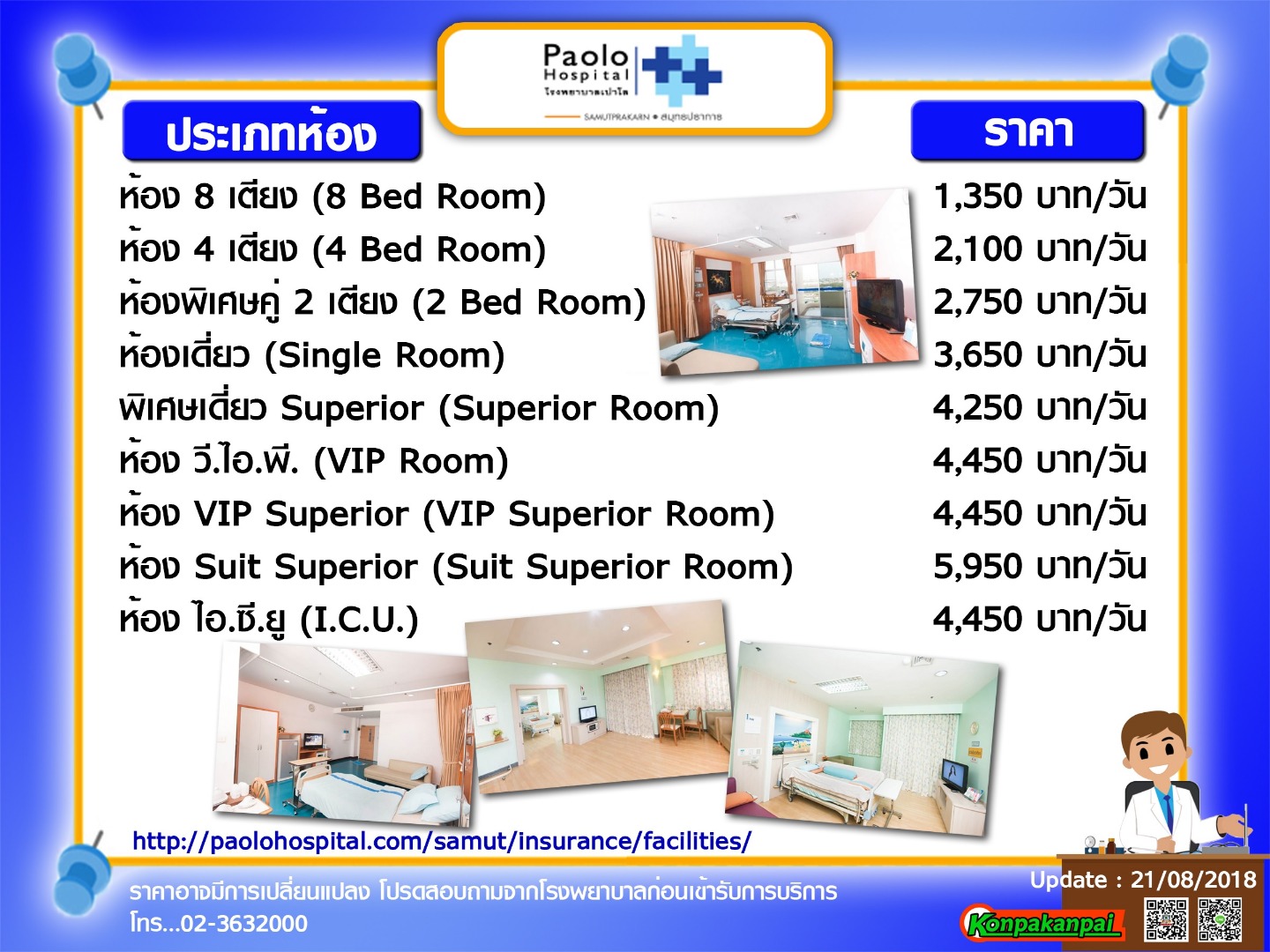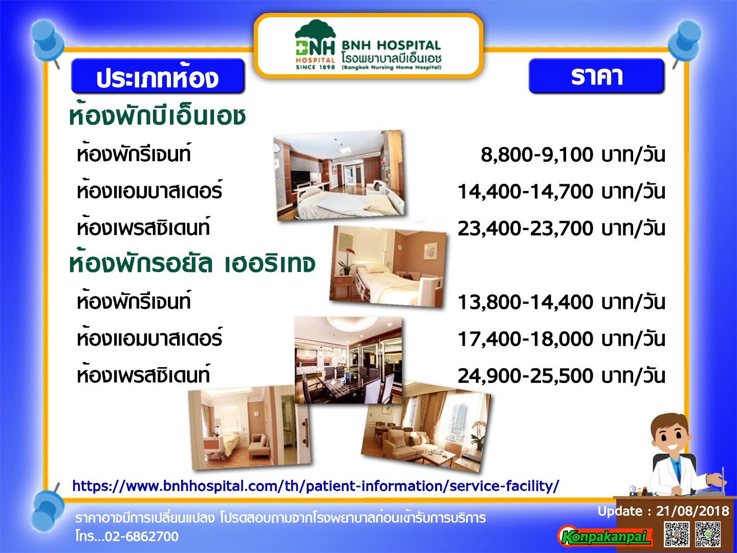 รวม "ค่าห้องผู้ป่วย" ของ "โรงพยาบาล" ทั่วกรุงเทพและปริมณฑล