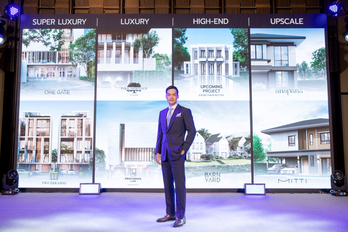 3.กลุ่ม High-end เปิดโครงการใหม่มูลค่ารวมทั้งหมด 2,900 ล้านบาท ได้แก่ แบรนด์ Barn Yard บ้านที่ออกแบบด้วยแนวคิด Classic American Farmhouse กับโลเคชั่นใกล้อุทยานแห่งชาติเขาใหญ่ จังหวัดนครราชสีมา ที่มาพร้อมการออกแบบจัดวางพื้นที่บ้านแต่ละหลังให้มีระดับที่ลดหลั่นกัน ทำให้ทุกบ้านสามารถเห็นวิวและเปิดรับธรรมชาติได้อย่างอิสระ ราคาเริ่มต้น 15.9 ล้านบาท และมูลค่าโครงการอยู่ที่ 900 ล้านบาท และอีกหนึ่งแบรนด์ (Upcoming Project) จะเป็นบ้านสไตล์โมเดิร์นคลาสสิก ราคาเริ่มต้น 30 ล้านบาท ตั้งอยู่บนพื้นที่ 29 ไร่ บนถนนกรุงเทพกรีฑา ซึ่งเป็นทำเลที่มีการขยายตัวของกรุงเทพมหานครฝั่งตะวันออกอีกแห่งหนึ่งที่มีความโดดเด่นเฉพาะตัว และแวดล้อมด้วยสิ่งอำนวยความสะดวกครบครัน มีจำนวน 64 ยูนิต รวมมูลค่ากว่า 2,000 ล้านบาท