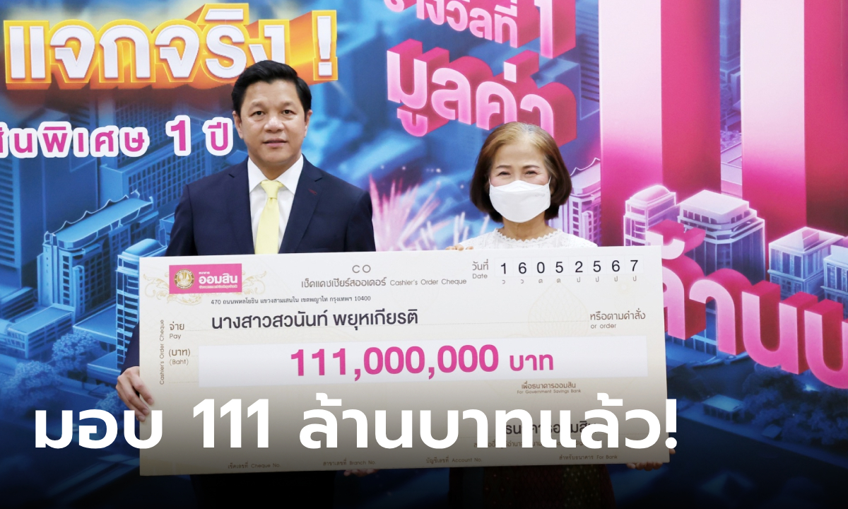 มอบแล้ว! เงินรางวัลสลากออมสิน 111 ล้านบาท ผู้โชคดีชาวนครปฐม