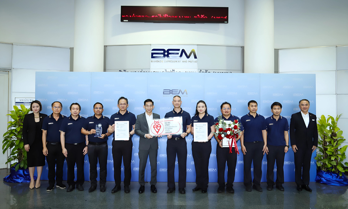 บริษัท ทางด่วนและรถไฟฟ้ากรุงเทพ จำกัด (มหาชน) หรือ BEM ผู้ให้บริการทางพิเศษและรถไฟฟ้า ได้รับการรับรองมาตรฐานระบบบริหารจัดการความมั่นคงปลอดภัยสารสนเทศ หรือ ISO/IEC 27001:2022 ในขอบเขตของการดำเนินงานส่วนของระบบเก็บค่าผ่านทางพิเศษและระบบควบคุมจราจรอัจฉริยะ (Expressway Toll Collection System and Intelligent Traffic Control System) และระบบโครงสร้างพื้นฐานสารสนเทศ (Back Office’s IT Infrastructure) โดยมี นายอัลวิน จี รองกรรมการผู้จัดการ พร้อมด้วยคณะผู้บริหาร รับมอบใบรับรอง จากนายกุลธัช บุญบงการ Country Manager บริษัท บีเอสไอ กรุ๊ป (ประเทศไทย) จำกัด ณ อาคารบริหาร บริษัท ทางด่วนและรถไฟฟ้ากรุงเทพ จำกัด (มหาชน) หรือ BEM เมื่อเร็วๆนี้