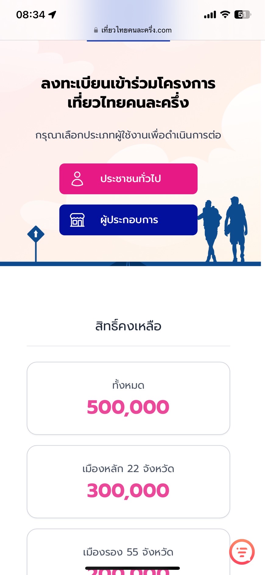 เข้าเว็บไซต์ www.เที่ยวไทยคนละครึ่ง.com