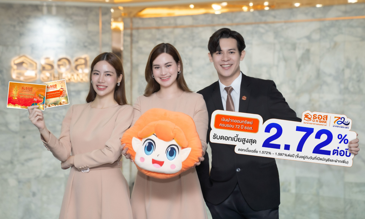 ธอส. ออกแคมเปญ สลากออมทรัพย์-เงินฝากออมทรัพย์ ดอกเบี้ยสูงสุด 2.75% ต่อปี ฉลองครบ 6 รอบ 72 ปี