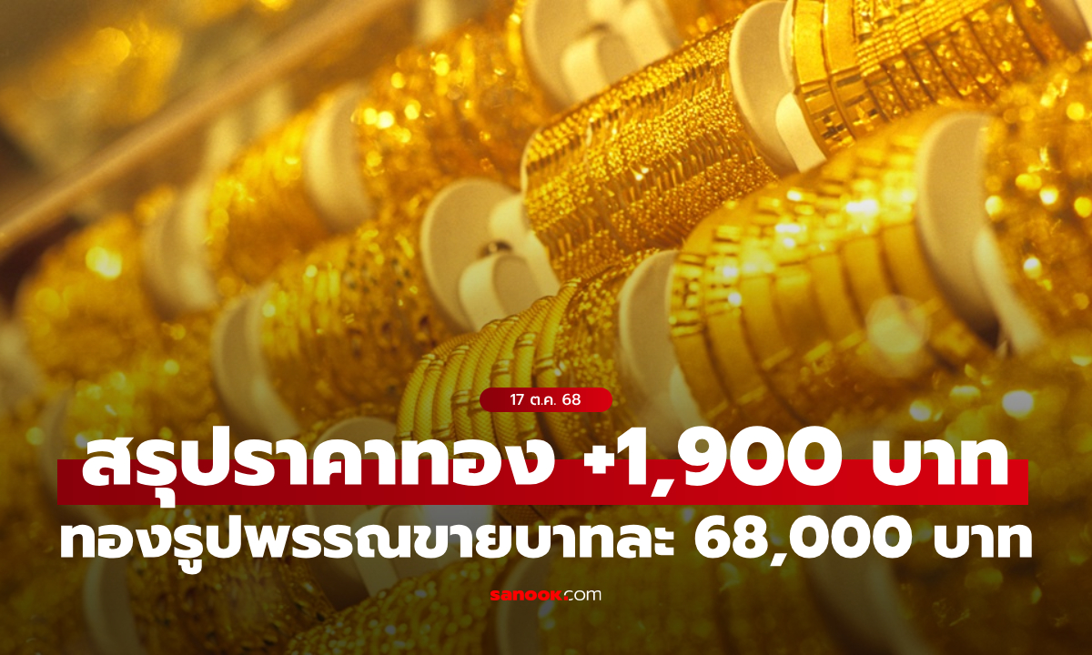 สรุปราคาทองวันนี้ 17 ต.ค. 68 ผันผวน 31 ครั้ง ปิดตลาดเพิ่มขึ้น 1,900 บาท