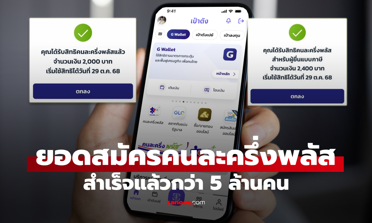 กรุงไทย เผยยอดลงทะเบียนคนละครึ่งพลัส ผ่านแอปฯ เป๋าตัง สำเร็จแล้วกว่า 5 ล้านคน ใน 30 นาทีแรก