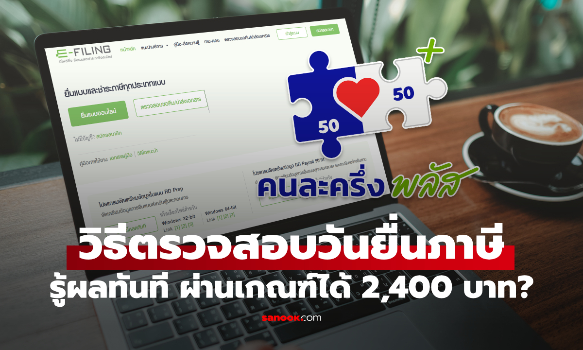 วิธีตรวจสอบวันยื่นภาษีด้วยตนเองรู้ผลทันที ผ่านเกณฑ์คนละครึ่งพลัสรับ 2,400 บาทไหม