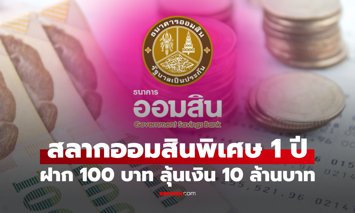สลากออมสินพิเศษ 1 ปี ฝาก 100 บาท ลุ้นเงิน 10 ล้านบาท รับดอกเบี้ยจุกๆ ปลอดภาษี เช็กเงื่อนไขได้ที่นี่