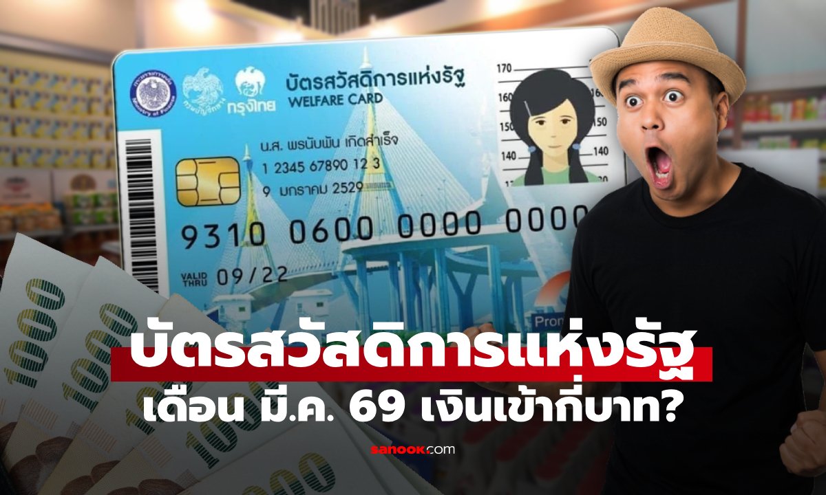 เงินเข้าบัตรสวัสดิการแห่งรัฐ เดือนมีนาคม 2569 กี่บาท