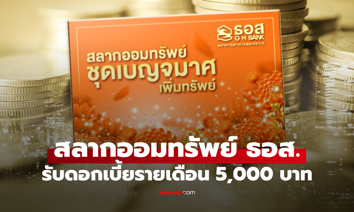 สลากออมทรัพย์ ธอส. ชุดเบญจมาศเพิ่มทรัพย์ ดอกเบี้ยสูง 1.20% ต่อปี รับดอกเบี้ยรายเดือน ลุ้นรางวัลใหญ่ 5 ล้านบาท ทุกงวด เริ่มวันที่ 17 มี.ค. 69 เป็นต้นไป