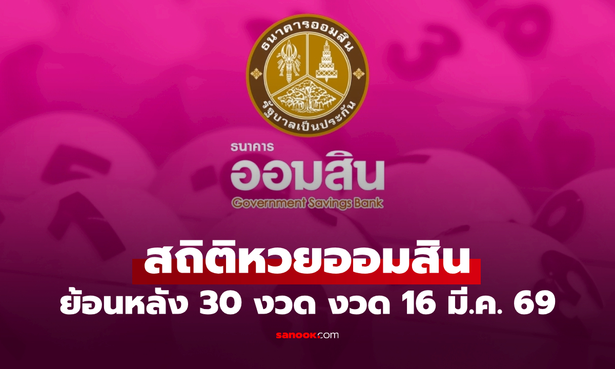 สถิติหวยออมสิน 16/3/69 หวยออมสินวันนี้ออกอะไร ย้อนหลัง 30 งวด