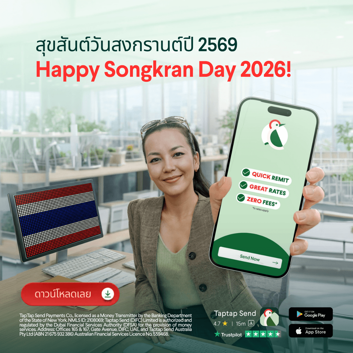 กรุงเทพฯ ประเทศไทย – เมษายน 2569 — ในช่วงเทศกาลสงกรานต์ปีนี้ Taptap Send (TTS) แอปโอนเงินระหว่างประเทศ เดินหน้าถ่ายทอดความหมายที่แท้จริงของเทศกาลปีใหม่ไทย นั่นคือ สายใยความผูกพัน การแบ่งปัน และความเป็นครอบครัว ไม่ว่าคุณจะอยู่ที่ใดในโลกก็ตาม
