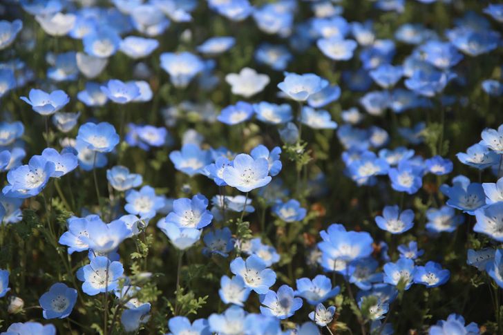 ดอกไม้อีกชนิดที่เราจะมาแนะนำนั้นก็คือ ดอกเนโมฟีลา (Nemophila) ที่กำลังได้รับความนิยมอยู่ในตอนนี้ ดอกไม้เล็กๆ สีฟ้าชนิดนี้ไม่ได้ขึ้นทั่วไป แต่เราสามารถไปชมได้ตามสวนขนาดใหญ่ ที่มีดอกเนโมฟีลาปลูกไว้อย่างละลานตา กลายเป็นทุ่งสีฟ้าที่งดงามราวท้องทะเลเลยทีเดียว