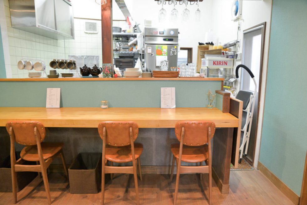 ทางด้านในของร้านจะมีมุมคาเฟ่ไว้บริการ มีที่นั่งที่เคาน์เตอร์ 4 ที่ และเป็นโต๊ะ 2 ที่