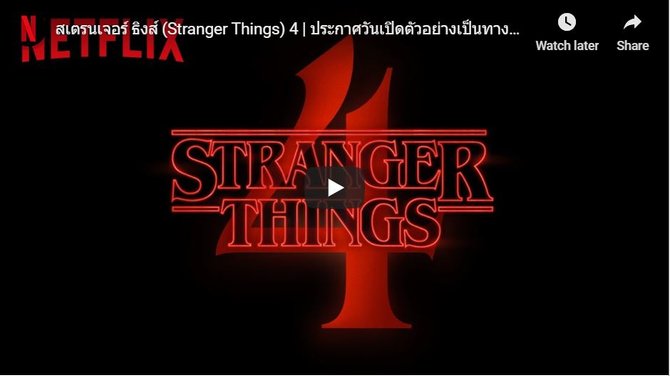 โดยทีเซอร์ตัวแรกของ Stranger Things 4 นั้นไม่มีอะไรมาก มีเพียงฟอนท์ชื่อซีรีส์สีแดงพร้อมตัวเลข 4 อย่างที่หลายคนคุ้นเคย แต่พอผ่านไปจนถึงช่วงกลางของคลิป ทุกอย่างก็กลับกลายเป็นโลก Upside Down ความน่าสะพรึงกลัวเหมือนจะเริ่มต้นขึ้นอีกครั้ง พร้อมข้อความที่ปรากฏขึ้นว่า “เราไม่ได้อยู่ในฮอว์กินส์แล้ว” หรือเรื่องราวในซีซั่นนี้ แก๊งเด็กเนิร์ดแห่งเมืองฮอว์กินส์จะต้องออกไปเผชิญหน้ากับความระทึกใจในสถานที่แห่งใหม่กันนะ?
