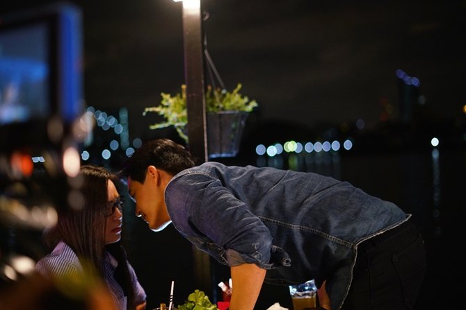 ฉากนี้ผกก. สันต์ ศรีแก้วหล่อ ยกกองไปถ่ายทำฉากนี้กันที่ร้านอาหารริมน้ำ เมื่อทีมงานเนรมิตบรรยากาศแสง สี สวยสมใจแล้ว จึงเรียกตู่และเมย์มาซักซ้อมคิวทันที งานนี้ถือว่าเป็นงานถนัดของหนุ่มตู่ เพราะเป็นหนุ่มอบอุ่น โรแมนติกอยู่แล้ว จึงทำให้การซ้อมฉากนี้ไหลลื่นเป็นพิเศษ เมื่อทุกฝ่ายเข้าใจกันดีแล้ว ผู้กำกับก็สั่งแอ็คชั่นทันที