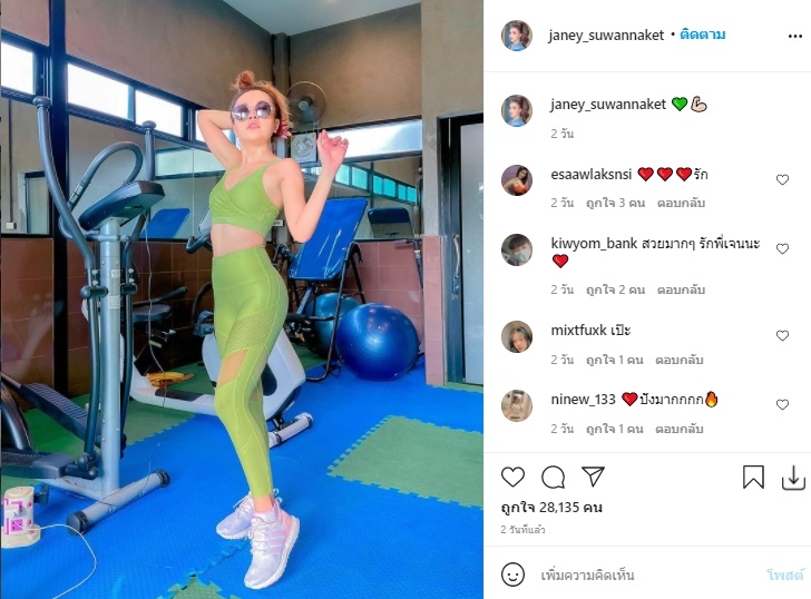 โดยเจนนี่ได้เผยภาพขณะที่เธอกำลังออกกำลังในยิมส่วนตัว พร้อมชุดออกกำลังสีเขียวแบบเอวลอย ซึ่งโพสต์ดังกล่าวก็มีแฟนๆ เข้าไปกดถูกใจมากกว่า 20,000 ครั้งแล้ว และมีคนแสดงความเห็นจำนวนมากเช่นกัน