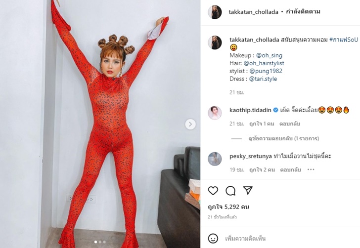 เรียกได้ว่าเวลานี้ ตั๊กแตน ชลดา (พบพร ภาคินทร์) ได้กลายเป็นศิลปินที่มาพร้อมแฟชั่นและคอสตูมแซ่บแบบรัวๆ โดยล่าสุดเธอได้ทำให้แฟนๆ รายการ คุยแซ่บโชว์ ที่เธอร่วมดำเนินรายการ อึ้งไปกับลุคในชุดบอดี้สูทที่เผยให้เห็นรูปร่างแบบเต็มๆ