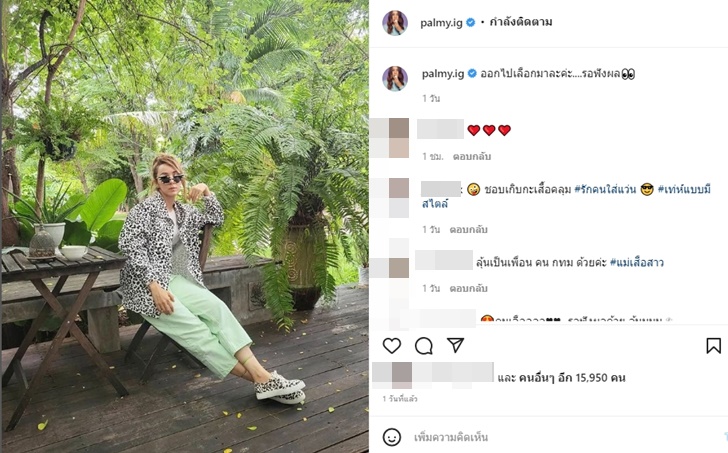 แต่ทว่าคอมเมนต์แฟนๆ กลับพากันไปโฟกัสที่เสื้อคลุมและรองเท้าที่มาพร้อมลายเสือดาว จนแฟนๆ พร้อมใจกันขอซื้อและขอลายแทงคอสตูมของปาล์มมี่กันแบบล้นหลาม ในขณะที่แฟนๆ ก็มาคอมเมนต์เรื่องการเลือกตั้งและคอนเสิร์ตในวันนั้นด้วย