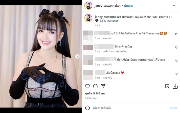และอีกโพสต์ภาพนิ่งที่เจนนี่นำมาลงก็มากับแคปชั่นว่า "ไม่ถนัดรักษาหุ่น ถนัดรักษา “คุณ” มากกว่า >< @lilly_nareenat" ซึ่งก็มีหลายๆ คนที่พูดถึงความสวยของสองพี่น้องในลุคนี้เช่นกัน