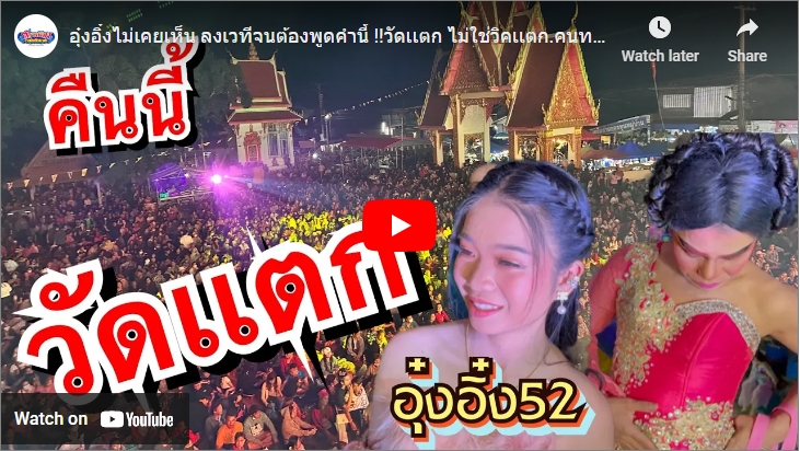 ซึ่งนอกจากภาพนิ่งแล้ว โจ ยมนิล ก็ได้โพสต์วิดีโอพร้อมแคปชั่นว่า "อุ๋งอิ๋งไม่เคยเห็น ลงเวทีจนต้องพูดคำนี้ !!วัดเเตก ไม่ใช่วิคเเตก.คนทะลักจนล้นสุดๆงานนี้ 52ต้องมีส่วน." จนหลายคนเข้ามาคอมเมนต์ใต้คลิปดังกล่าวแบบล้นหลาม