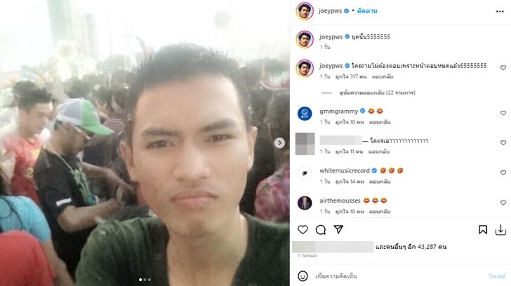 หลังจากที่โพสต์ภาพดังกล่าว ก็มีแฟนๆ เข้ามาคอมเมนต์กันจำนวนมาก เช่นเดียวกับรุ่นพี่ในค่าย genie records อย่าง แอร์ พงศกร ลิ่มสกุล นักร้องนำวง The Mousses ที่มากับอิโมจิหัวเราะน้ำตาไหล