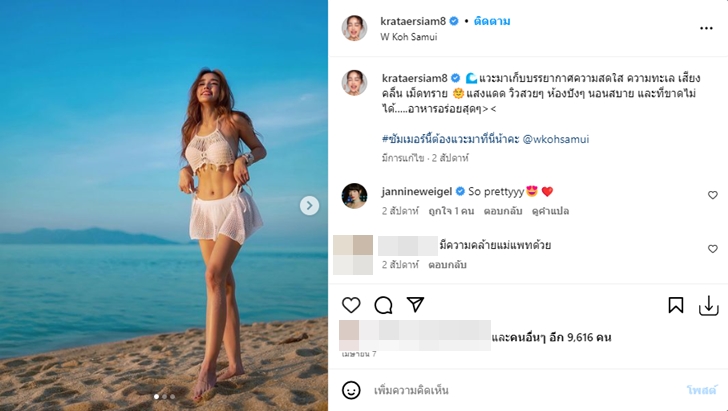 โดยในช่วงหยุดยาว แฟนๆ ได้เห็นกระแตมากับลุคชิลล์ๆ ในวันที่เดินทางไปเกาะสมุย ซึ่งภาพที่เธอเผยซิกแพ็คริมทะเลก็เป็นที่พูดถึงของหลายๆ คน รวมถึงศิลปินรุ่นน้องอย่าง พลอยชมพู-ญานนีน ภารวี ไวเกล ที่เข้ามาคอมเมนต์ชื่นชมใต้โพสต์ดังกล่าว