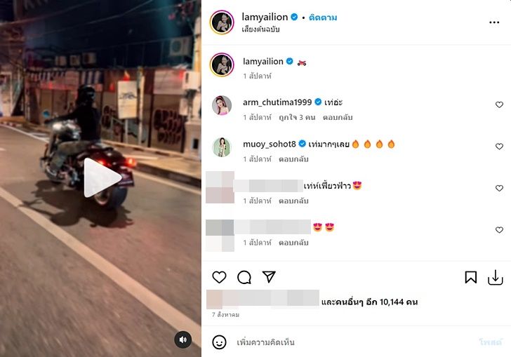 ลำไย ไหทองคำ เผยคลิปเท่ขี่มอเตอร์ไซค์คันใหญ่ ทำเพื่อนดาราฮือฮาคอมเมนต์ไม่หยุด!