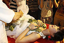 เมื่อเหตุการณ์ดังกล่าวถูกเผยแพร่ ชาวเน็ตหลายคนต่างออกมารุมประณามอย่างรุนแรง โดยชาวเน็ต รายหนึ่งกล่าวว่าการใช้เรือนร่างผู้หญิงมาจัดอาหารกินเช่นนี้ เป็นการดูถูกสตรีเพศ นอกจากนี้วัฒนธรรมที่ทรงคุณค่าอันเลื่องลือก็ถูกย่ำยีด้วยวิธีการต่ำๆ แบบนี้ เทศกาลไหว้บะจ่างเป็นมรดกวัฒนธรรมจากบรรพบุรุษที่ชาวจีนสามารถอวดแสดงแก่ชาวต่างชาติอย่างภาคภูมิ กลับมาถูกทำลายแบบนี้เลย